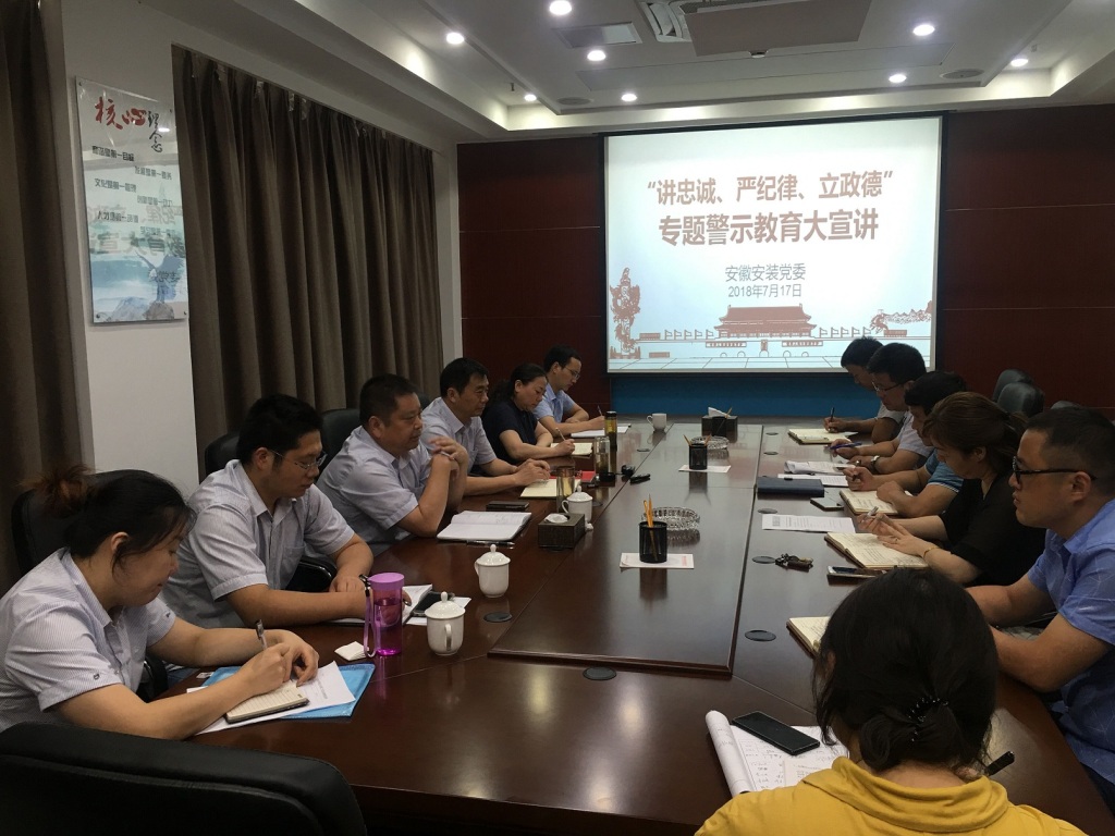 本次宣講以《“講忠誠、嚴紀律、立政德”,做“忠誠、干凈、擔當”的黨員干部》為主題,圍繞魯煒案、徽商集團窩案反面教材,省委巡視組對部分省屬企業(yè)在巡視發(fā)現的問題,集團公司黨委大宣講、大督查發(fā)現的問題,安裝公司目前存在的問題,對照“六聚焦六整肅”深入查擺存在的問題,要求黨員干部要保持絕對忠誠,嚴守紀律規(guī)矩,樹立良好政德,將從嚴管黨治黨落到實處。還通過對集團公司、公司優(yōu)秀共產黨員、優(yōu)秀黨務工作者先進模范事例的宣貫,要求黨員干部要在履職盡責上樹標桿、敢于擔當上作表率,做“忠誠、干凈、擔當”的黨員干部。