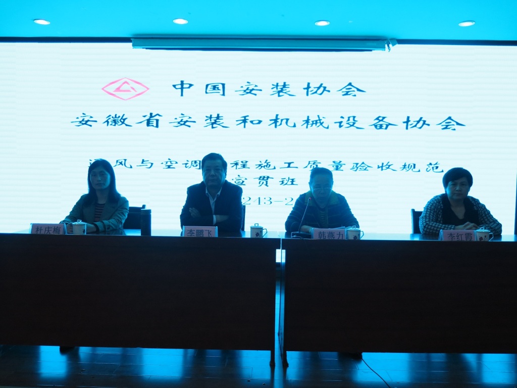2017年11月10日,由中國安裝協(xié)會主辦,安徽省安裝和機械設(shè)備協(xié)會承辦的《通風與空調(diào)工程施工質(zhì)量驗收規(guī)范》(GB50243-2016)宣貫班在安徽合肥成功舉辦。這是中國安裝協(xié)會與安徽省安裝和機械設(shè)備協(xié)會首次合作開展培訓。來自北京、山西、江蘇和我會會員單位負責人、技術(shù)負責人、工程師等相關(guān)人員200多人參會。安徽省安裝和機械設(shè)備協(xié)會副會長李鵬飛作了開班動員,中國安裝協(xié)會培訓班主任韓燕力提出基本要求。