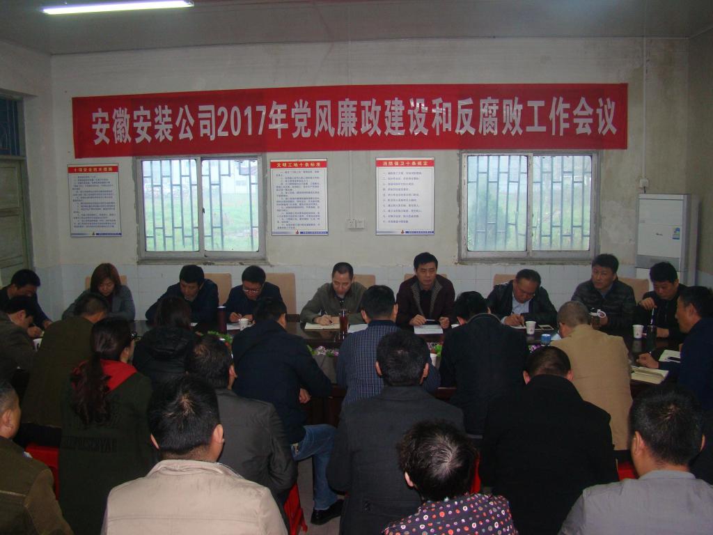 3月30日上午,安徽安裝公司黨委在安徽省白湖監(jiān)獄管理分局罪犯醫(yī)療綜合樓工程項目部召開2017年黨風廉政建設和反腐敗工作會議,公司領導班子成員、中層以上管理人員、部分項目經(jīng)理及白湖監(jiān)獄罪犯綜合樓項目管理干部50多人參加了會議。會議由公司紀委書記、工會主席李寬旭主持。