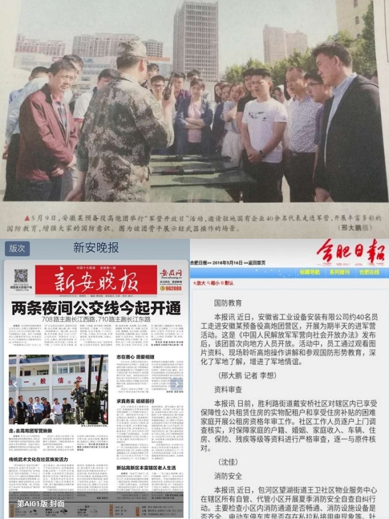 自5月9日安徽安裝公司組織開展赴安徽預(yù)備役師高炮團營區(qū)開展“走進(jìn)軍營·感受軍魂”愛國主義教育實踐活動以來,合肥日報、新安晚報、人民陸軍報等多家媒體對此活動進(jìn)行了報道。