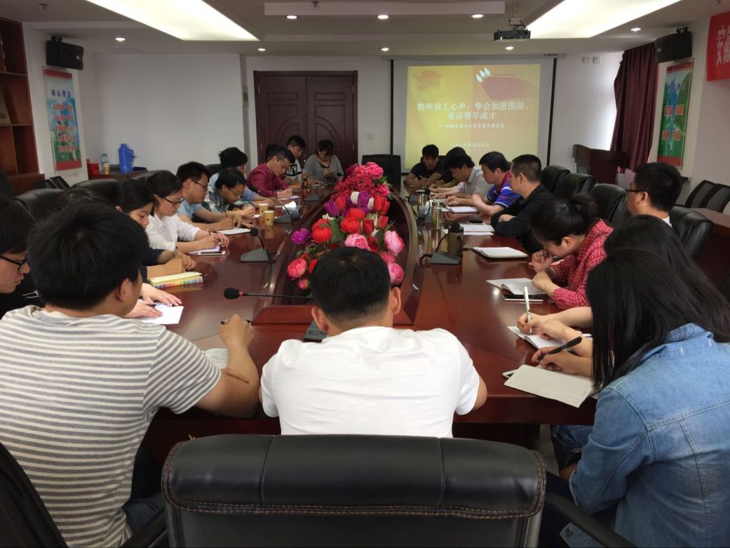 5月5日下午,安徽安裝公司團委召開了以“聆聽員工心聲、學(xué)會知恩圖報、寄語青年成才”為主題的團員青年座談會,公司黨委書記、副總經(jīng)理胡六中,紀(jì)委書記、工會主席李寬旭,副總經(jīng)理王勝利應(yīng)邀參加了座談會,與各位團員青年交流談心。座談會由公司團委書記王偉主持。