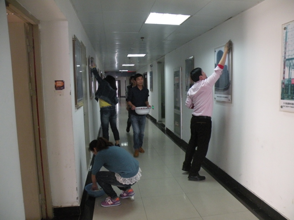331日下午,公司團(tuán)委組織機(jī)關(guān)團(tuán)員開展義務(wù)勞動,對公司所在九華國際大廈1516樓走廊兩側(cè)的宣傳圖畫、宣傳欄以及消防櫥窗進(jìn)行徹底擦洗。擦洗走廊兩側(cè)一幅幅精品工程,感知著公司發(fā)展歷程,“小伙伴們”心中油然而生“我為省安人而驕傲”!