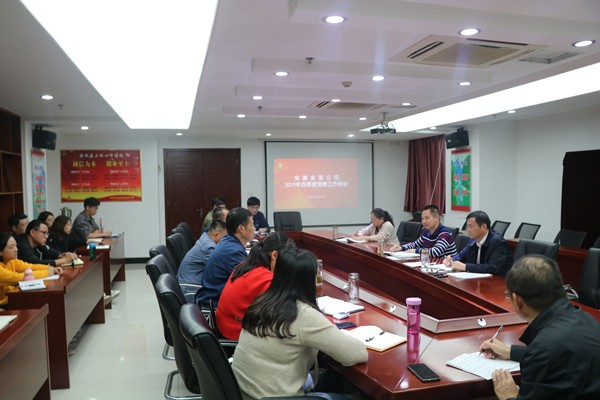 會(huì)上,所屬各黨支部圍繞扎實(shí)開展“不忘初心、牢記使命”主題教育、推動(dòng)省委巡視反饋問題整改、慶祝新中國成立70周年系列活動(dòng)、支部其他重點(diǎn)工作、支部中存在的不足及四季度主要工作計(jì)劃進(jìn)行交流匯報(bào)。隨后公司黨群部門對(duì)四季度主要工作進(jìn)行了布置。