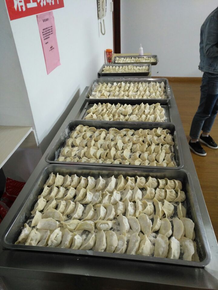 公司工會(huì)和后勤保障部為本次活動(dòng)作了精心的籌備,協(xié)調(diào)職工食堂準(zhǔn)備好了各種材料,參加活動(dòng)的女職工自帶刀具、搟面杖。上午9時(shí)許,30多名女職工齊聚職工食堂。她們個(gè)個(gè)大顯身手,忙得不亦樂乎……你和面,我搟皮,她包餃子,一道道工序有條不紊,只見女職工們一手托著餃子皮,一手夾著肉餡,舞動(dòng)著靈巧的手指,一個(gè)個(gè)精致漂亮、形態(tài)各異、不乏創(chuàng)意十足的餃子就在她們手中成形,在托盤里擺開陣勢,形成了一道靚麗的風(fēng)景。就在你追我趕、歡聲笑語、交流手藝中,1200多個(gè)餃子新鮮出爐!有的女職工還不忘把自己的作品拍照傳到微信朋友圈中“曬曬”。臨近中午,餃子下鍋了,誘人的香氣四散開來,令人垂涎欲滴。女職工們你盛一碗,我盛一碗,與剛剛下班的男職工們圍座在一起,一邊回味著活動(dòng)的快樂,一邊品嘗著勞動(dòng)的成果,其樂融融地盡情共享餃子盛宴,共同度過一個(gè)輕松愉快且有意義的節(jié)日。