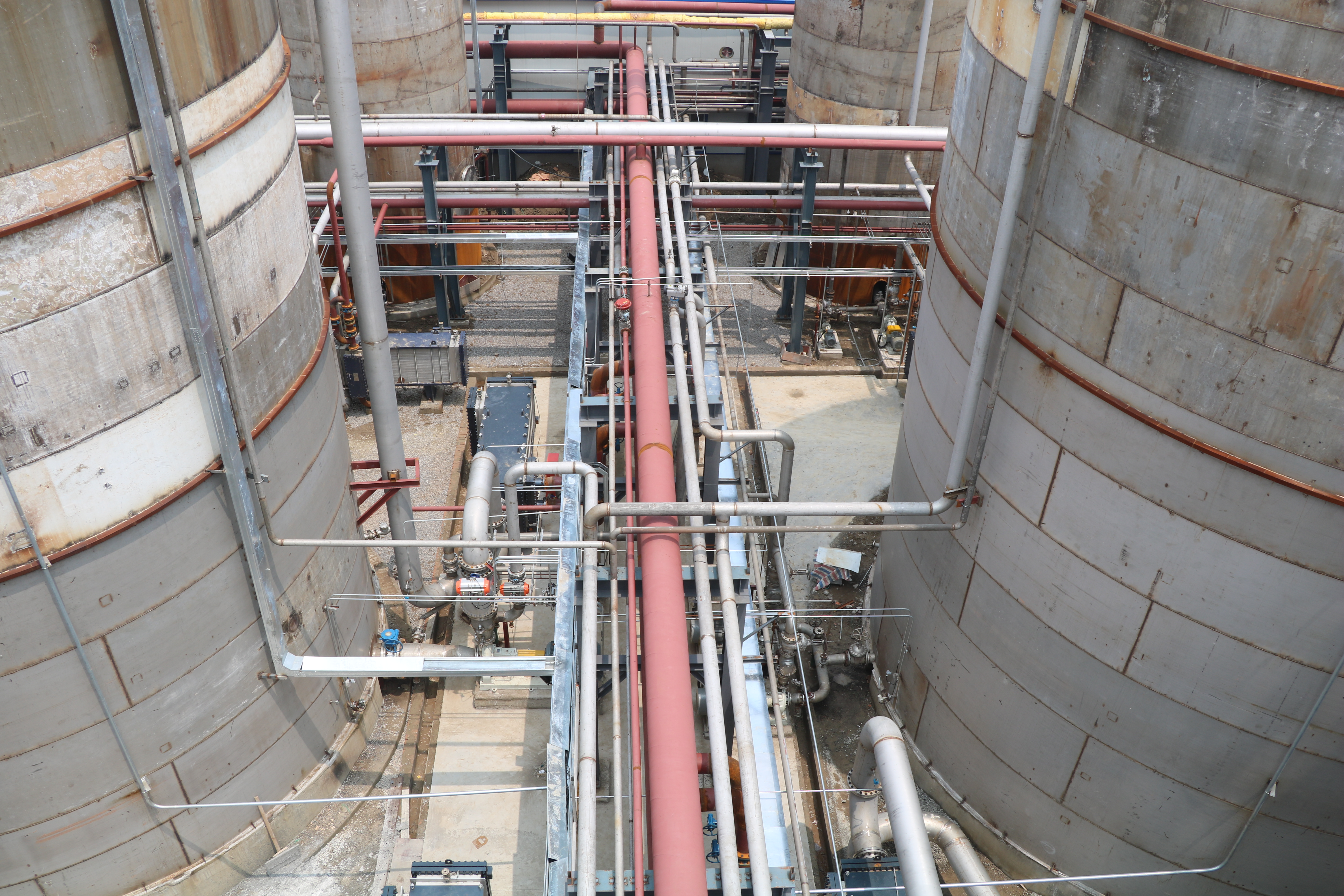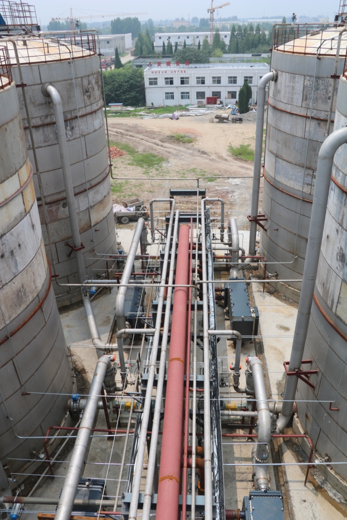 2018年10月,蚌埠分公司中標(biāo)宿州中糧無水乙醇搬遷技改項目。該項目為發(fā)酵工序區(qū)域以及酒精罐區(qū)、混配站裝置區(qū)域裝置利舊設(shè)備拆遷(保護性拆除)轉(zhuǎn)運(含各類罐22臺、離心機組3套)非標(biāo)設(shè)備制作安裝,設(shè)備總重量約1055噸,工藝管道約4500米及電氣儀表專業(yè)施工。工程總造價1584萬元。