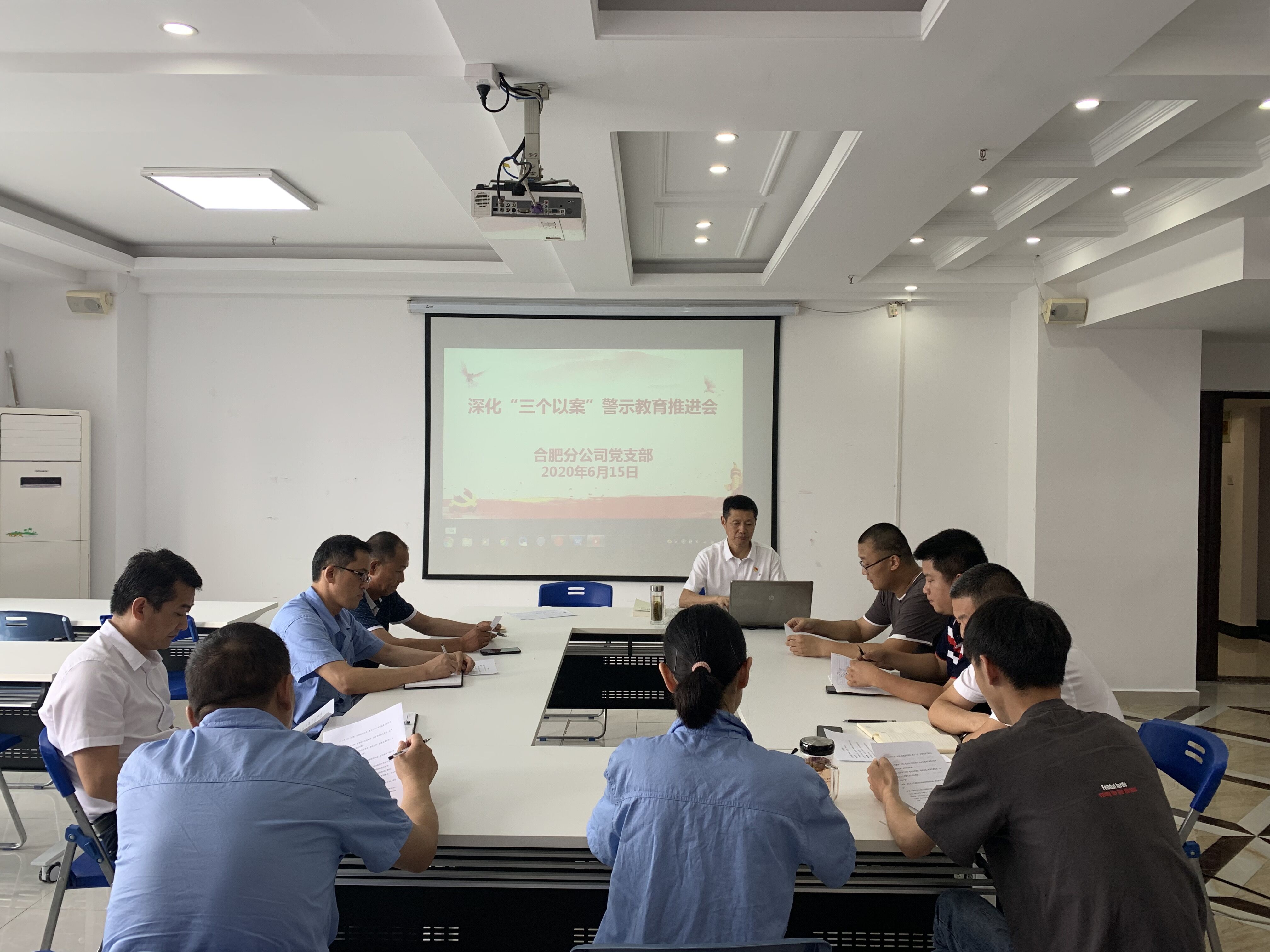 6月15日下午,合肥分公司黨支部召開深化“三個以案”警示教育推進會,黨支部書記胡迎東主持會議。分公司領(lǐng)導班子、機關(guān)全體黨員參會,項目部黨員以視頻會議形式同步參加。