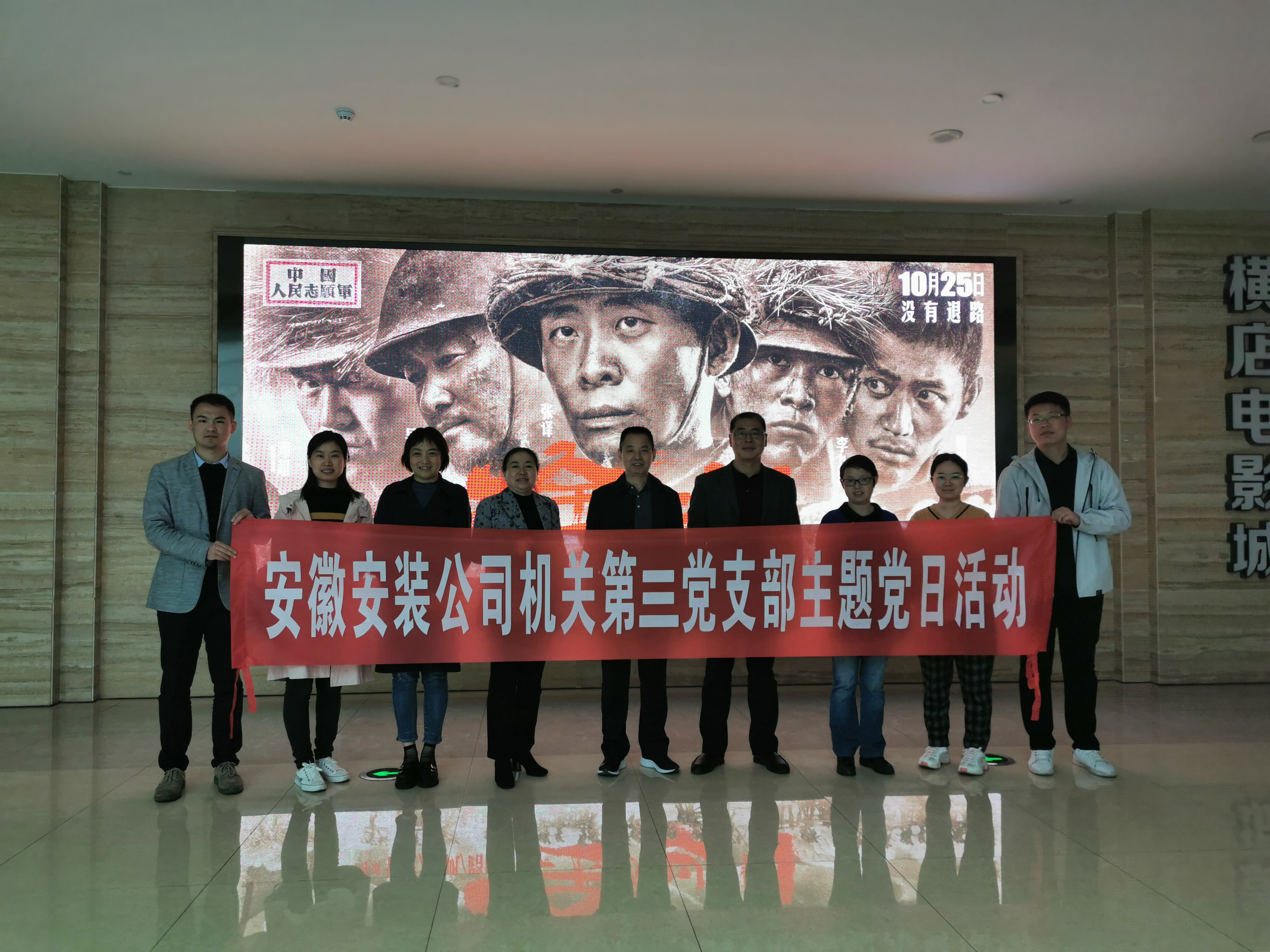 為紀(jì)念抗美援朝偉大戰(zhàn)爭(zhēng),向中國(guó)人民志愿軍致敬,2020年10月26日,機(jī)關(guān)第三黨支部組織全體黨員觀看抗美援朝主題電影《金剛川》。公司黨委書記、董事長(zhǎng)胡六中,副總經(jīng)理李原及總會(huì)計(jì)師張?jiān)笠云胀h員身份參加。