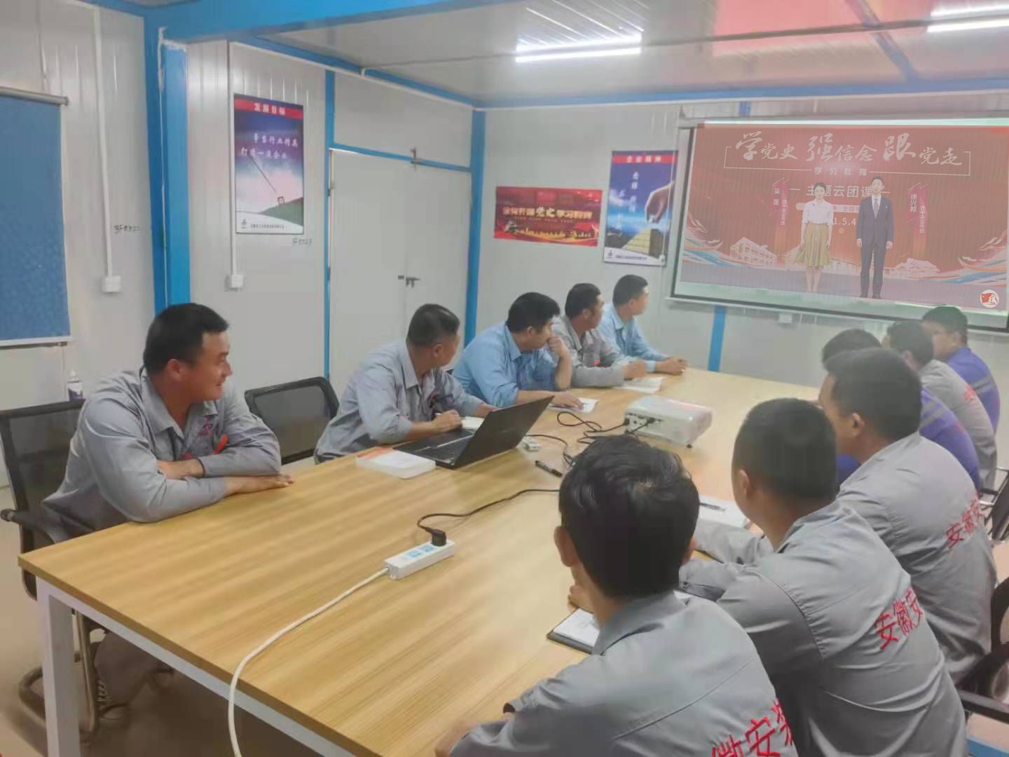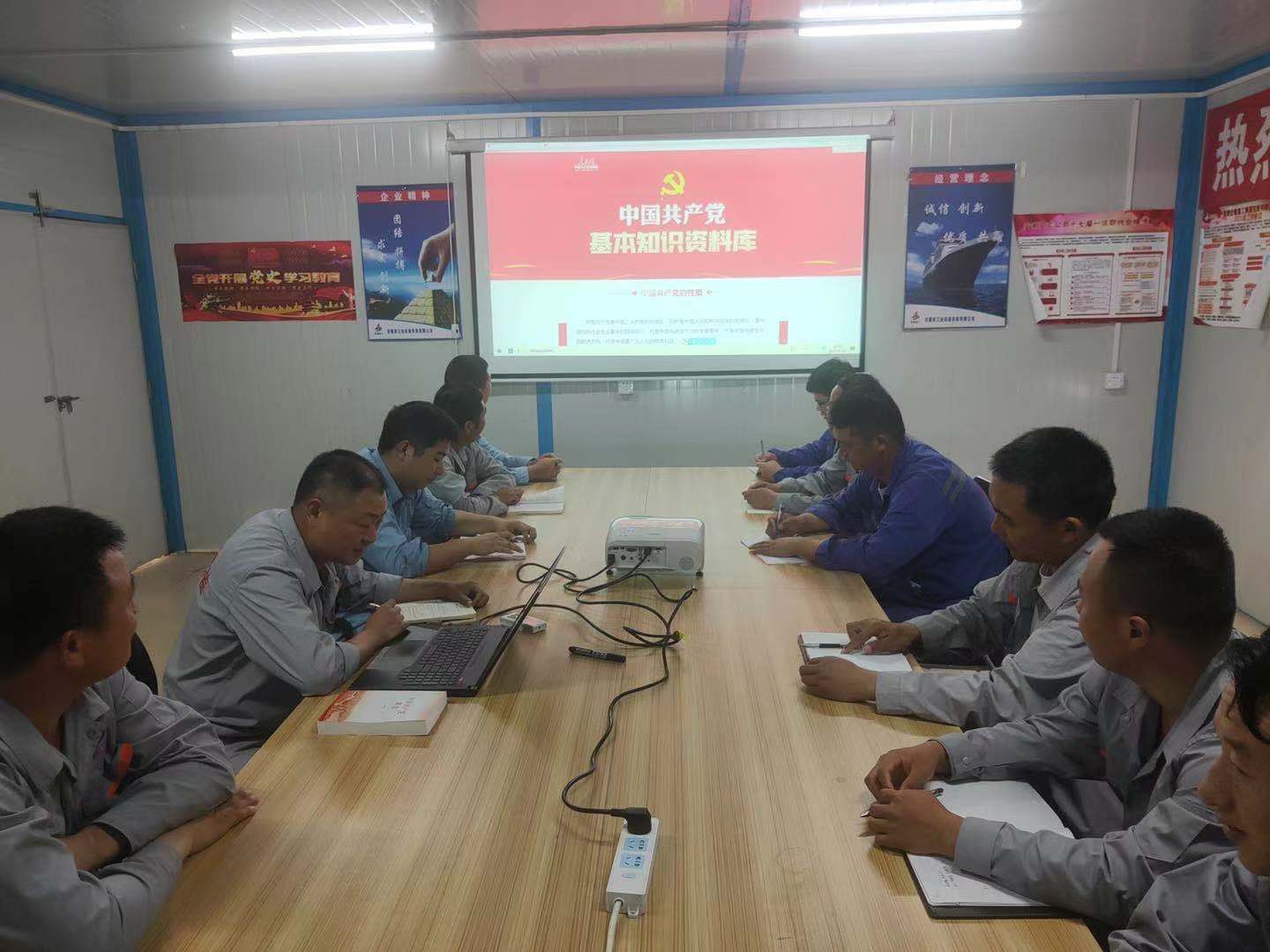 項(xiàng)目部積極響應(yīng)公司黨史學(xué)習(xí)教育要求,促進(jìn)黨史學(xué)習(xí)充分融入生產(chǎn)一線,營(yíng)造出濃厚的“學(xué)黨史、促生產(chǎn)”的良好氛圍。5月1日,項(xiàng)目部開展了黨史學(xué)習(xí)教育交流會(huì),會(huì)上項(xiàng)目部黨員皮軍同志帶領(lǐng)大家集中學(xué)習(xí)了《中國(guó)共產(chǎn)黨基本知識(shí)》并開展了黨史學(xué)習(xí)交流討論。5月4日,項(xiàng)目部組織團(tuán)員青年通過(guò)線上觀看節(jié)目的方式觀看了由共青團(tuán)中央、全國(guó)學(xué)聯(lián)舉辦的“學(xué)黨史、強(qiáng)信念、跟黨走”大型網(wǎng)絡(luò)直播主題云團(tuán)課學(xué)習(xí)活動(dòng),在歌聲中感受激情燃燒的光輝歲月,在影像影視中見(jiàn)證時(shí)代的發(fā)展、歷史的變遷。