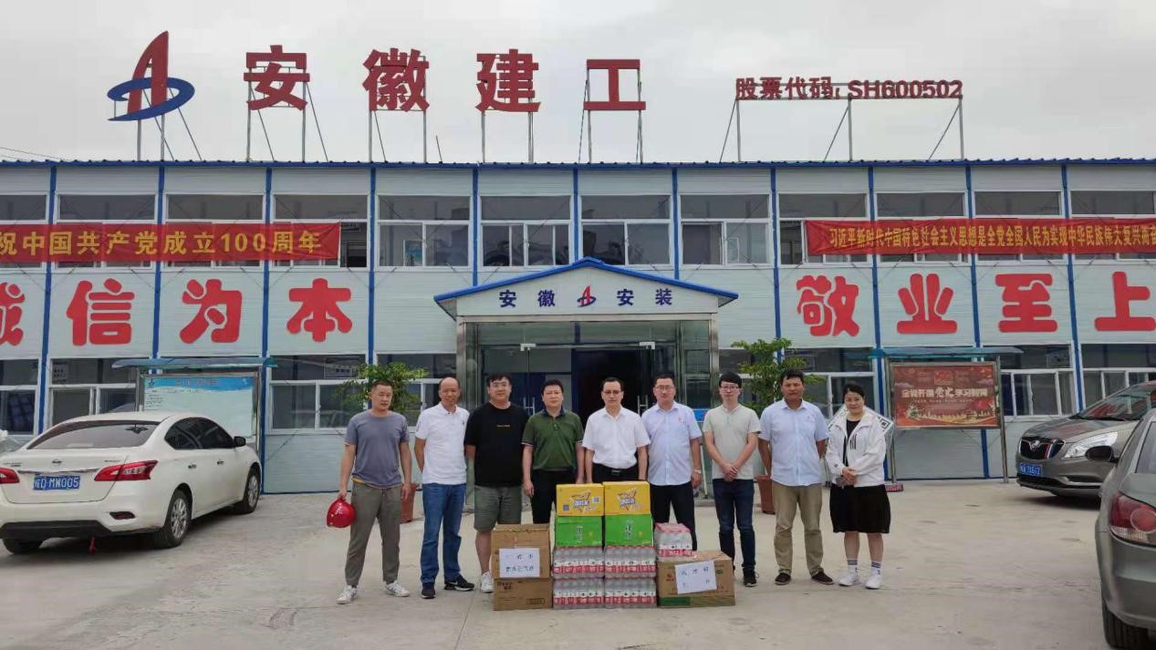 6月21日中午,室外溫度已超過35度,房建(裝飾)分公司黨支部書記王偉來到安徽壹石通化學科技廠房項目,實地看望和慰問了項目員工,為他們送去仁丹、藿香正氣口服液、十滴水、飲料、藥品等防暑降溫物品并與項目同志進行了座談交流。