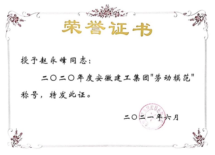 2019年3月,根據(jù)安徽安裝公司拓展市場(chǎng)、加快發(fā)展的工作要求,趙永峰勇挑重?fù)?dān),擔(dān)負(fù)起了合肥分公司“開拓市場(chǎng)一片天”的重任,團(tuán)結(jié)帶領(lǐng)分公司班子成員和全體員工立足新起點(diǎn)、整裝再出發(fā),努力為實(shí)現(xiàn)分公司新一輪大發(fā)展而不懈奮斗,取得的可喜成績(jī)得到了領(lǐng)導(dǎo)和員工們的一致認(rèn)可和稱贊。受到安徽建工集團(tuán)及安徽省工業(yè)設(shè)備安裝有限公司的表彰,在2021年7月1日-2日召開的安徽建工集團(tuán)控股有限公司二屆一次職工代表大會(huì)暨“七一”表彰會(huì)上,趙永峰同志作為集團(tuán)勞動(dòng)模范代表光榮的上臺(tái)授獎(jiǎng)。