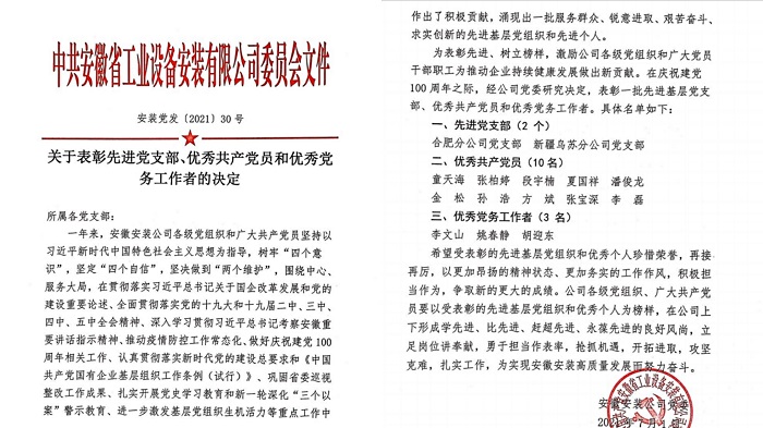 今年以來(lái),趙永峰同志以黨史學(xué)習(xí)教育和慶祝中國(guó)共產(chǎn)黨成立100周年為契機(jī),以集團(tuán)黨建“領(lǐng)航計(jì)劃”為抓手,創(chuàng)新型開展支部黨建工作,多措并舉,勠力同心,真抓實(shí)干,積極探索項(xiàng)目黨建工作新載體、新途徑,以深入開展創(chuàng)先爭(zhēng)優(yōu)“黨員示范崗”等主題實(shí)踐活動(dòng)為載體,以“我為群眾辦實(shí)事”實(shí)踐活動(dòng)帶領(lǐng)支部班子成員創(chuàng)造性地開展一系列黨建工作,用實(shí)際行動(dòng)踐行初心使命,用真抓實(shí)干檢驗(yàn)黨史學(xué)習(xí)教育成效。積極發(fā)揮了“一名黨員就是一面旗幟,一個(gè)支部就是一座堡壘”的重要作用。他所在合肥分公司被建工集團(tuán)授予“先進(jìn)集體”光榮稱號(hào),合肥分公司黨支部被安徽省工業(yè)設(shè)備安裝有限公司黨委評(píng)為“先進(jìn)黨支部”。趙永峰同志榮獲安徽建工集團(tuán)“勞動(dòng)模范”等多項(xiàng)榮譽(yù)稱號(hào)。