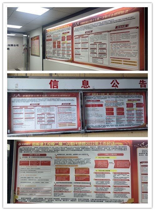 為統(tǒng)一思想,營造良好氛圍,分公司領導帶頭學,黨支部利用支委會、機關(項目部)專題學習會、班子理論學習會、黨員活動日以及下發(fā)會議精神圖解、張貼宣傳欄、深入基層一線宣講等多種形式,迅速掀起學習宣貫集團二屆二次職代會暨2022年工作會議和公司十七屆二次職代會精神的熱潮。