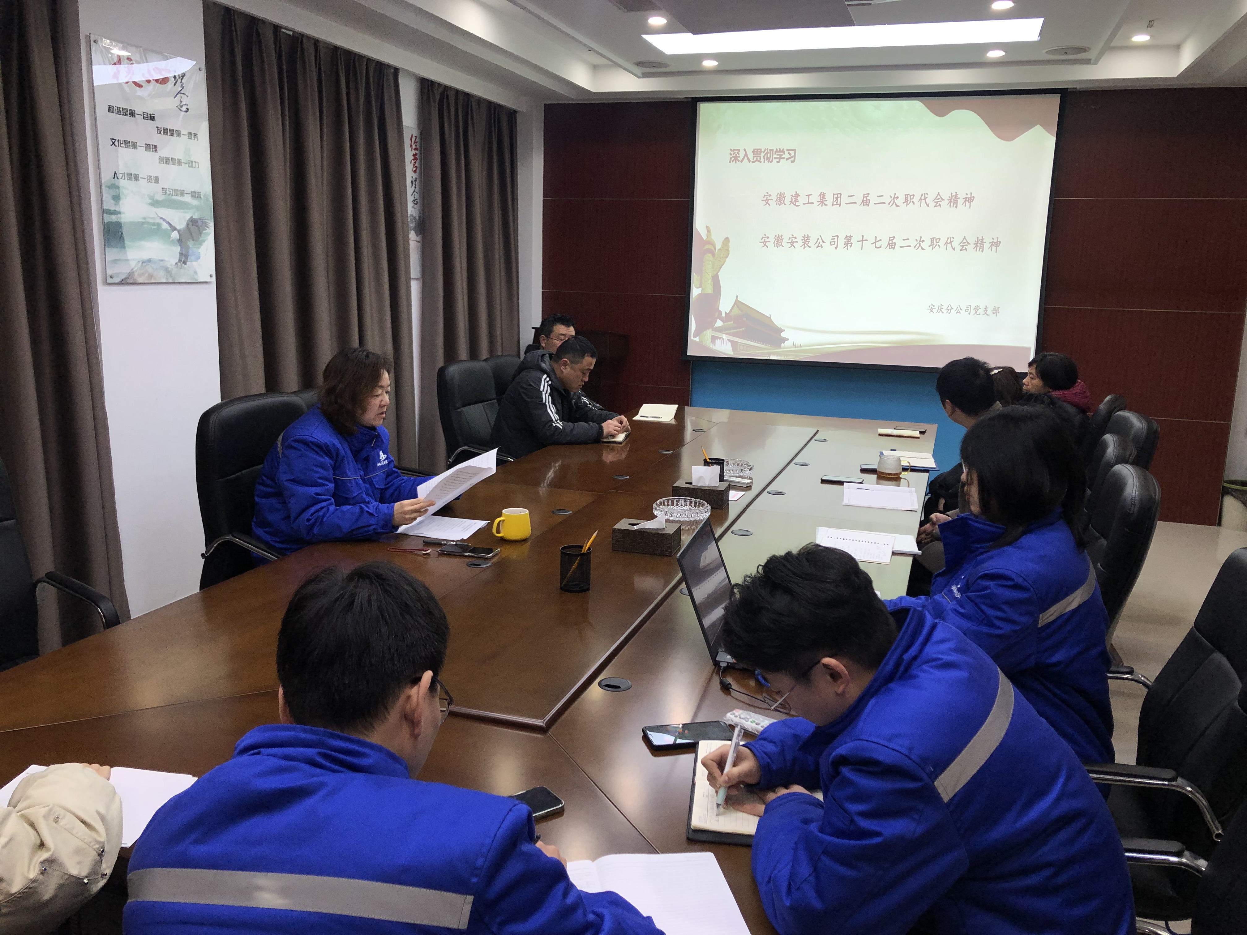 集團公司、公司兩級職代會相繼召開之后,2月9日,安慶分公司結合實際,迅速在分公司機關和項目部分別組織召開了專題學習會,積極開展學習宣貫兩級職代會精神。會議由分公司黨支部書記劉紅艷主持。
