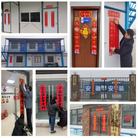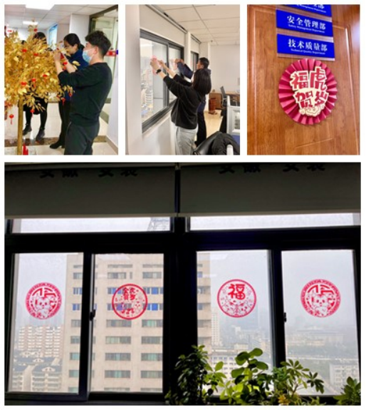 金牛送舊千家樂,玉虎迎新萬戶歡,春節(jié)將至,為豐富職工文化生活,營造歡樂、祥和、平安、喜慶、和諧的節(jié)日氣氛,合肥分公司工會提前準(zhǔn)備了喜慶的新年裝飾、對聯(lián)、窗花等節(jié)慶用品,組織團(tuán)員青年、機(jī)關(guān)員工將辦公室裝扮一新,并將濃濃年味帶到了各個項目部現(xiàn)場。
