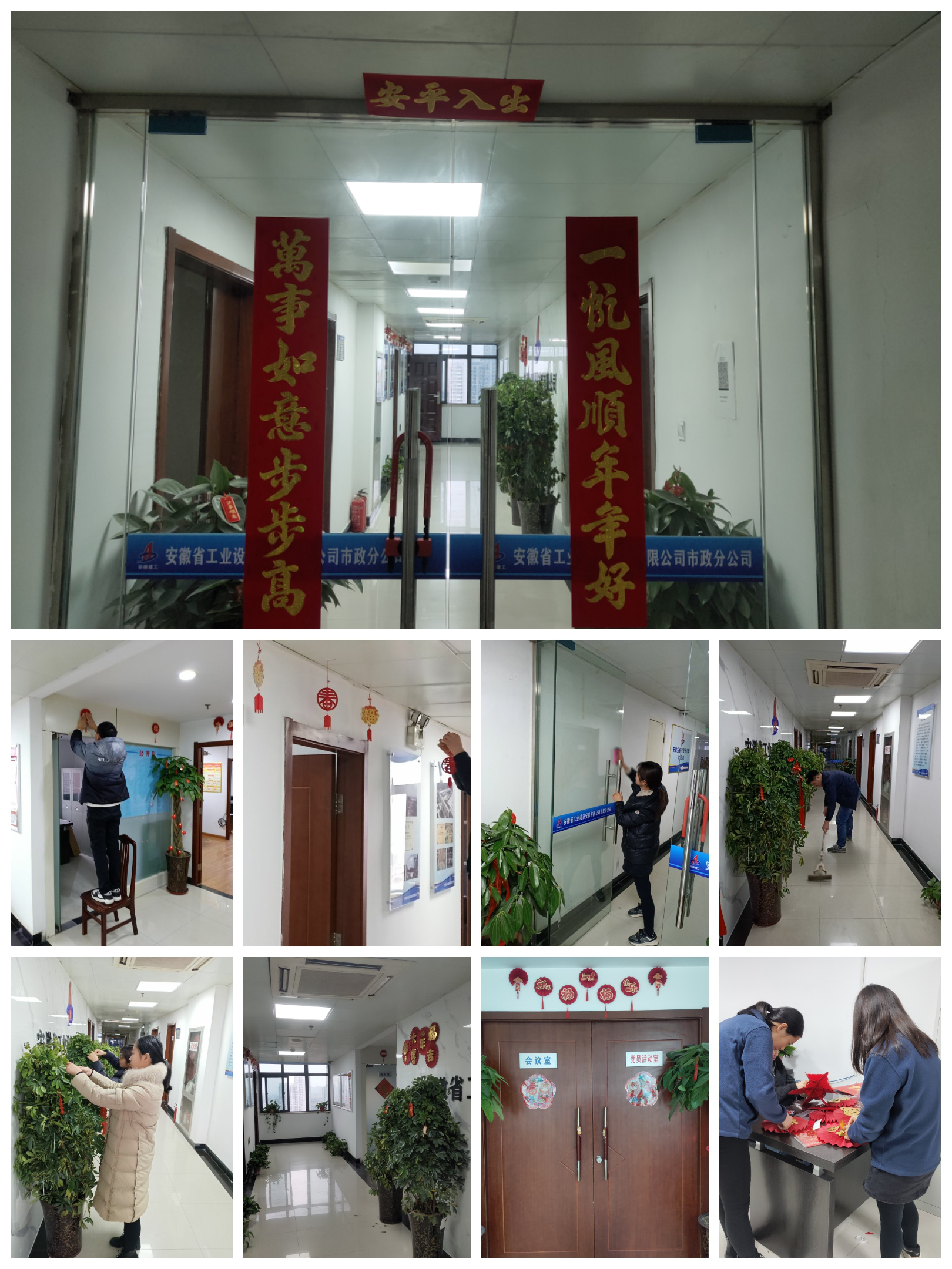 作為市政分公司掛牌成立后的第一個春節(jié),工會提前準備好拉花、拉旗等喜慶裝飾物,號召機關(guān)青年、團員自己動手張貼。此次活動得到大家的積極響應,員工們齊心協(xié)力、分工協(xié)作對辦公區(qū)域進行衛(wèi)生清潔與氛圍裝點,在機關(guān)走廊懸掛喜慶裝飾品,讓分公司處處充滿濃濃年味,紅紅火火、喜氣洋洋地迎接新一年的到來。