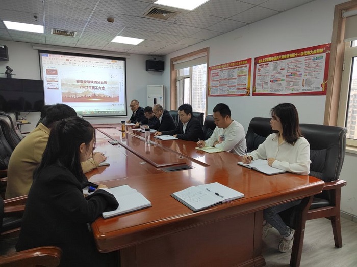 3月18日上午,陜西分公司組織召開2022年度職工大會,分公司領(lǐng)導(dǎo)班子成員、機(jī)關(guān)全體人員共同參會,會議由分公司黨支部書記江輝主持。
