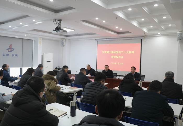 1月18日下午,建工控股黨委委員、副總經(jīng)理盛明宏率集團第八宣講組赴安徽安裝宣講黨的二十大精神并開展調(diào)研座談。股份公司黨委委員、副總經(jīng)理黃代,集團投資管理部部長孫仁發(fā),安徽安裝領(lǐng)導班子成員、機關(guān)部門負責同志參加宣講座談。