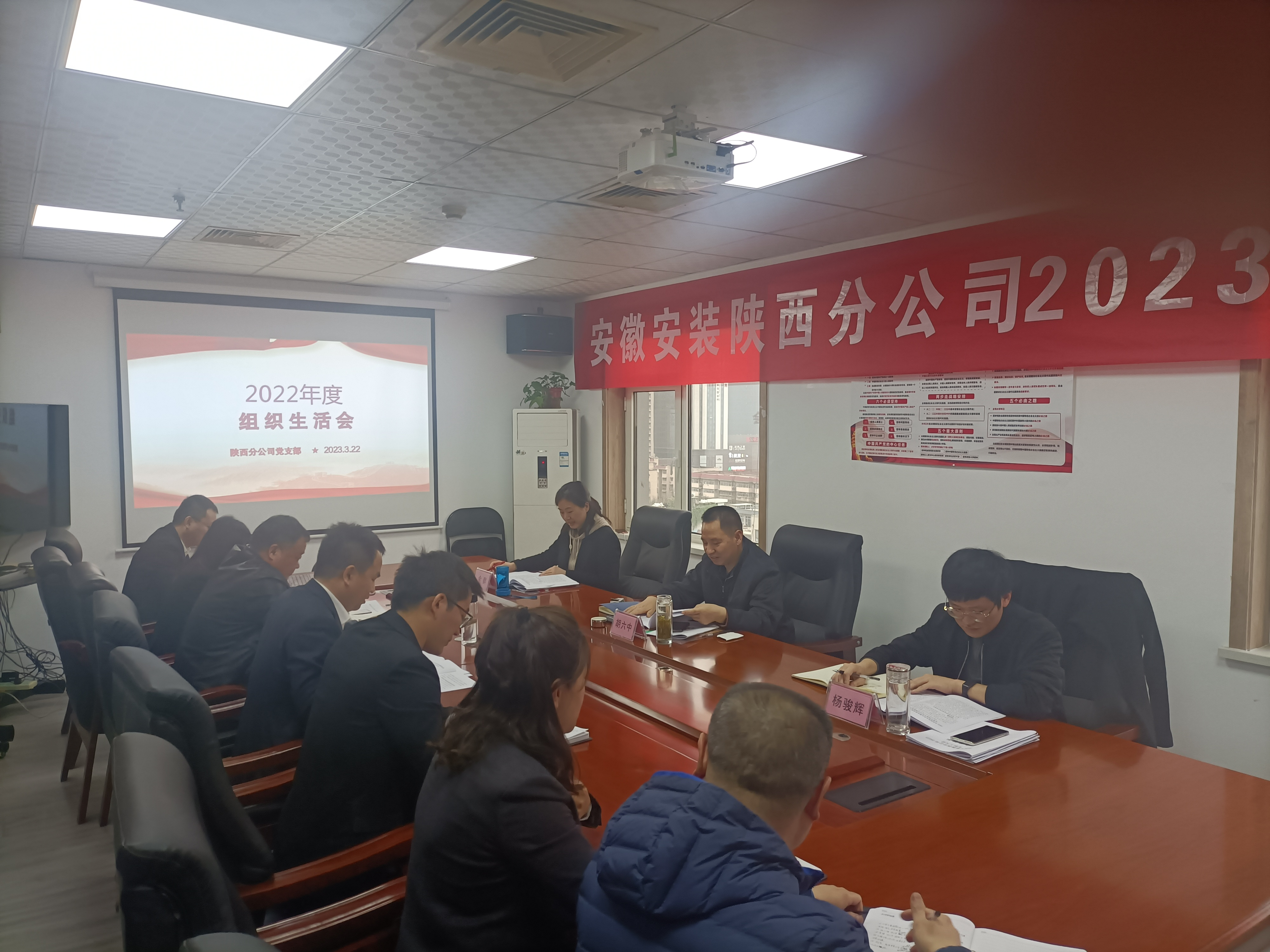 3月23日下午,陜西分公司黨支部在分公司會議室組織召開2022年度組織生活會暨省委巡視專題組織生活會,公司黨委書記、董事長胡六中應邀出席會議,分公司領導班子成員、全體黨員、入黨積極分子共同參會,黨支部書記張寶深主持會議。