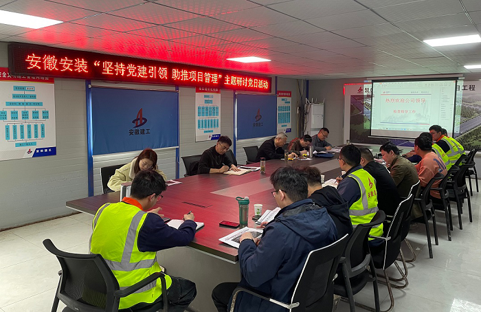 近日,安徽安裝公司黨委結(jié)合2023年一季度工程項目管理綜合檢查,到房建(裝飾)分公司阜南污水處理廠項目部和蚌埠分公司凱盛項目部組織開展了“堅持黨建引領(lǐng) 助推項目管理”主題研討黨日活動。公司黨委辦公室、工程管理部(安全管理部)、物資管理部、招標(biāo)辦公室、所屬分公司及項目部班子成員參加了此次活動。