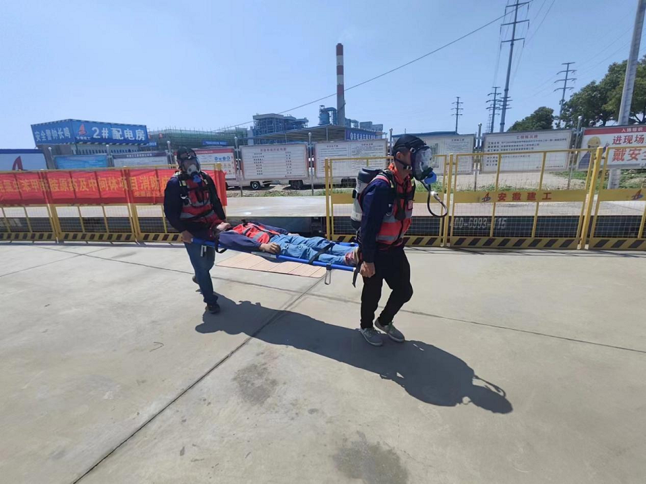 蚌埠分公司“年產(chǎn)2000噸氯蟲笨甲胺原藥及中間體工程一期一標(biāo)段總承包項目”開展安全事故應(yīng)急救援演練活動。