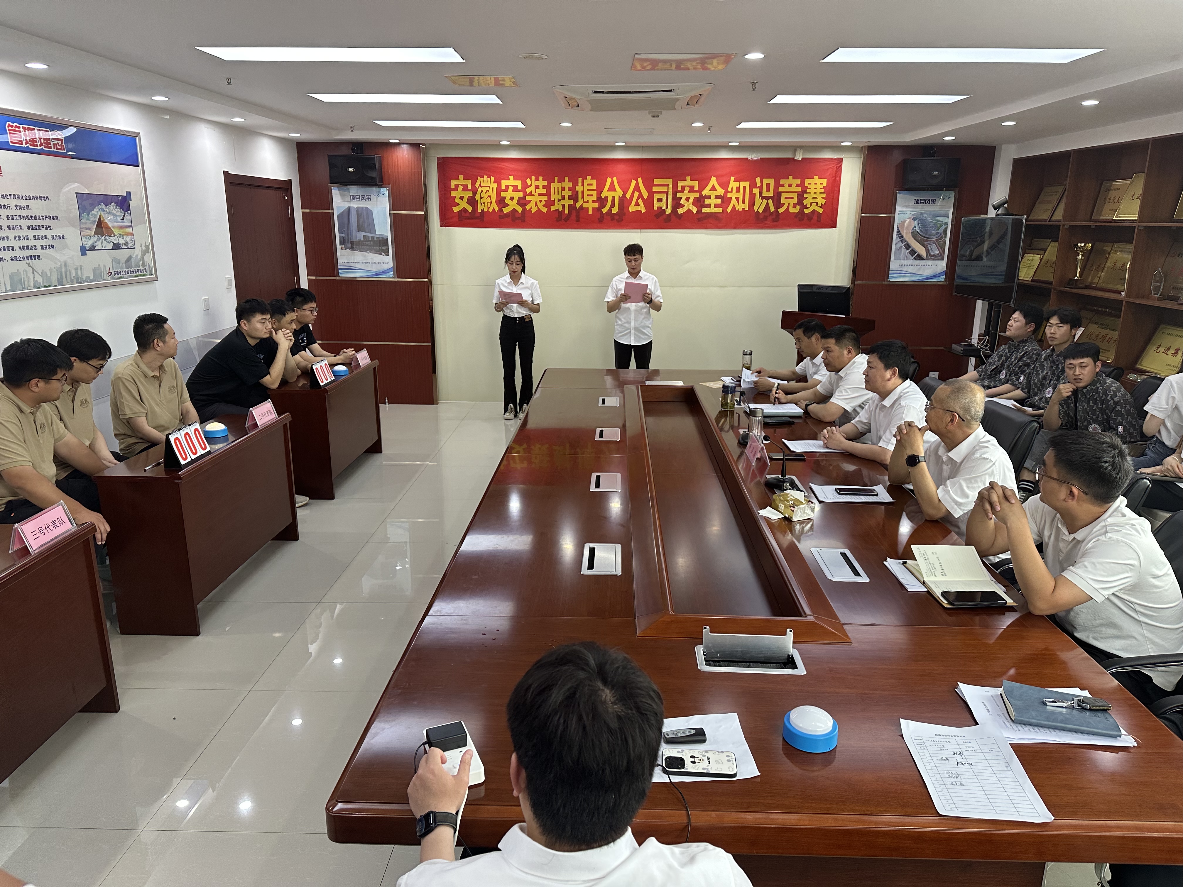 為提升蚌埠分公司安全管理水平,增強全員安全意識,規(guī)范安全生產(chǎn),消除安全隱患和事故苗頭,圍繞“人人講安全、個個會應(yīng)急”主題,6月9日下午,蚌埠分公司工會、安全管理部聯(lián)合舉辦蚌埠分公司第三屆安全知識競賽,分公司領(lǐng)導(dǎo)班子、機關(guān)全體員工、各項目代表參加活動。