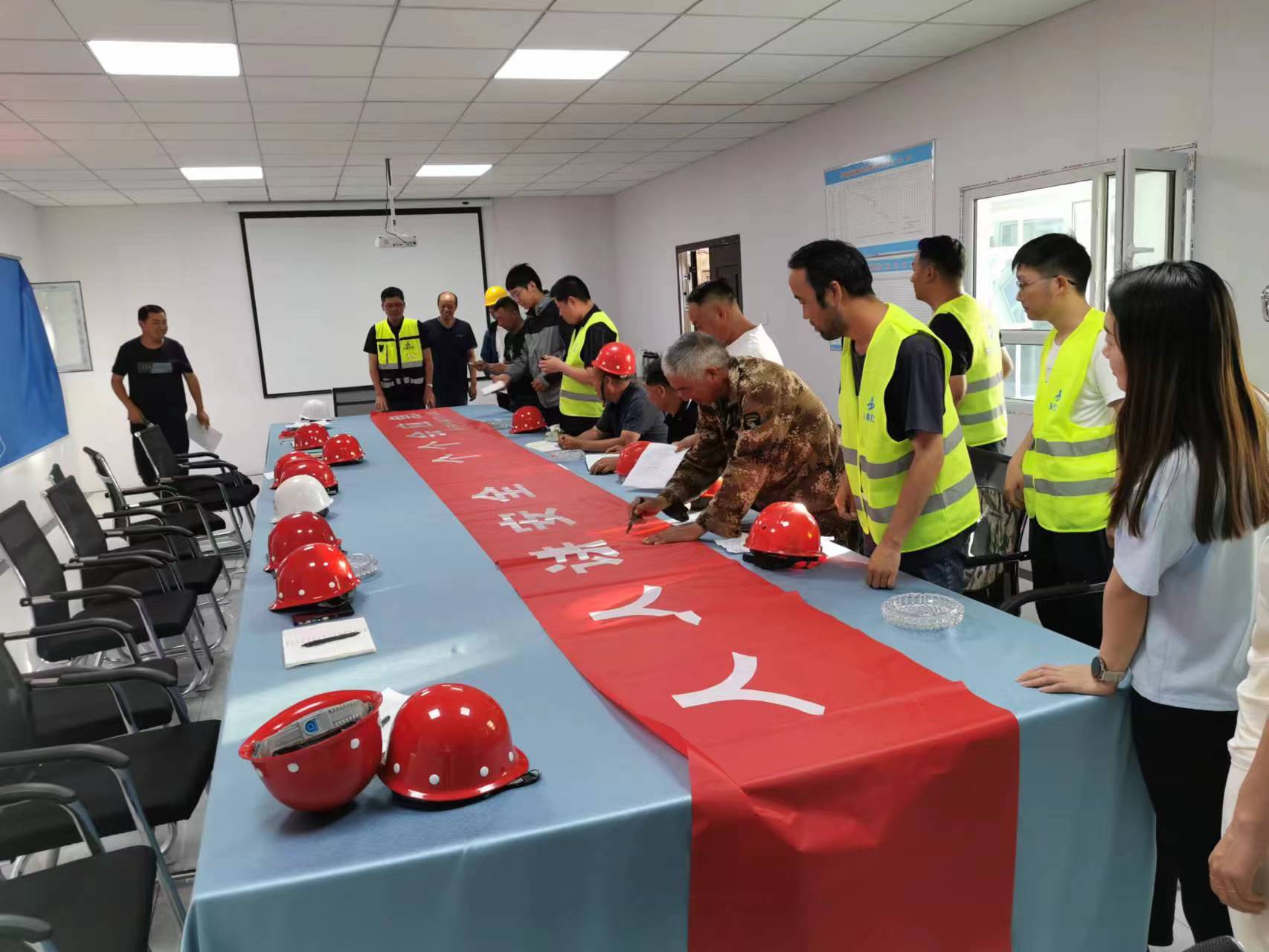 啟動儀式上,項目部安全員向大家宣讀此次安全月活動的活動方案,播放安全教育、警示類視頻,并著重講解施工現(xiàn)場及生活區(qū)一些常見而易忽視的安全隱患及防范措施,提升管理人員在面對風險時的安全意識,并指出確保安全是各類生產(chǎn)活動的首要任務,全員要樹立安全第一、生命至上的理念。分公司所屬項目部管理人員要嚴格落實安全生產(chǎn)責任制,樹牢安全紅線意識,通過宣傳教育、實戰(zhàn)演練、隱患排查等方式,讓分公司全體員工和所屬項目所有參建人員更積極主動參與到各項安全生產(chǎn)活動中來,清楚各自在安全體系管理中的責任及意義,努力營造一個“人人要安全、人人管安全”的良好安全管理氛圍,提升分公司安全管理水平。在儀式的最后,所有人員在安全員的帶領下莊嚴宣誓,并在印有“人人講安全,個個會應急”的橫幅上進行安全承諾簽名。