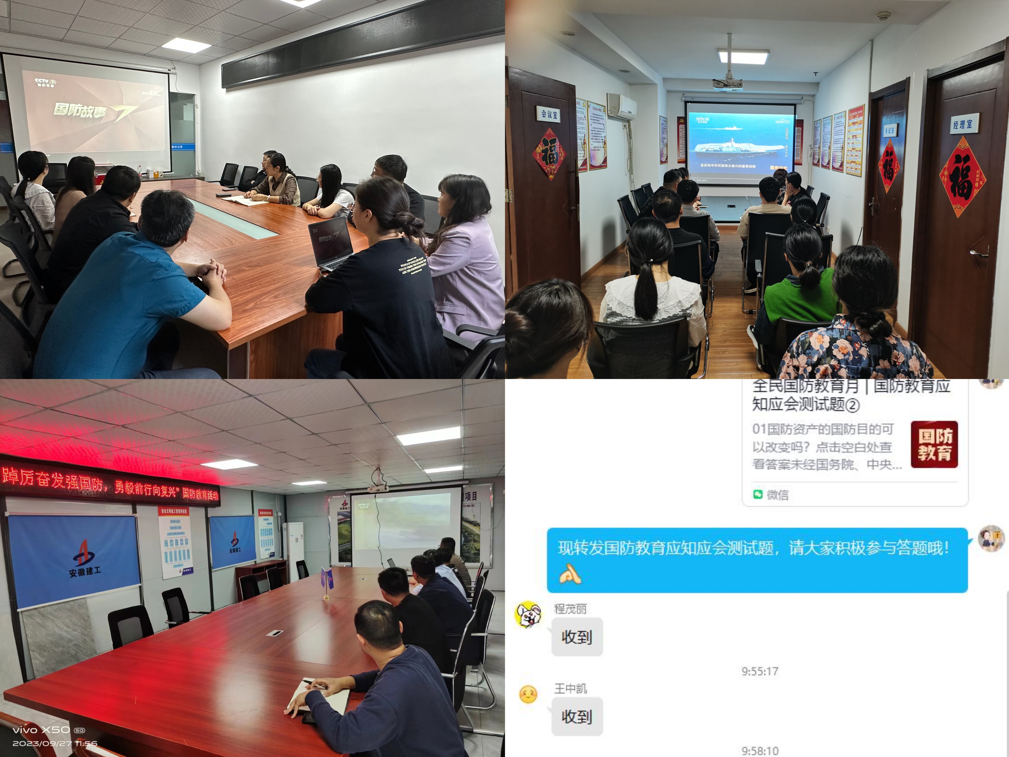 公司各級黨組織通過中心組學(xué)習(xí)會、紅色教育實景課堂、退伍軍人職工座談交流、紅色觀影、國防知識問答等多種形式,營造出關(guān)心國防、熱愛國防、建設(shè)國防、保衛(wèi)國防的濃厚氛圍,廣大職工紛紛表示要樹立國防觀念,賡續(xù)紅色血脈,立足崗位、恪盡職守、錘煉本領(lǐng),為推進奮力開創(chuàng)安徽建工集團大發(fā)展、轉(zhuǎn)型發(fā)展、高質(zhì)量發(fā)展新局面而不懈奮斗。