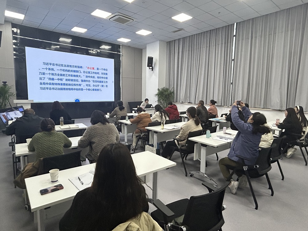 下午,綜合辦公室主任黃俊筠分別從題為《關(guān)于辦公室職能的幾點思考與認識》《接待與禮儀知識》《情緒管理》三個課程充分闡述了綜合辦人員應(yīng)具備的專業(yè)能力與素養(yǎng),并結(jié)合實際案例詳細分析綜合業(yè)務(wù)管理工作的關(guān)鍵要點,同時對各單位綜合管理工作提出了更高的要求。