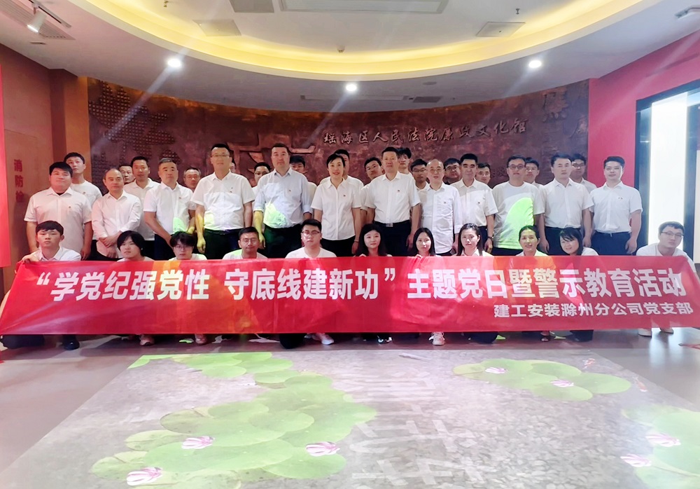 為扎實推進黨紀學習教育走深走實,進一步增強分公司黨員干部黨紀觀念和廉潔意識,培育分公司“清廉文化”干事創(chuàng)業(yè)氛圍,5月16日下午,建工安裝滁州分公司黨支部組織分公司領導班子成員、機關部門負責人、項目經(jīng)理、全體黨員和團員青年共40余人,赴瑤海區(qū)人民法院廉政文化館開展“學黨紀強黨性、守底線建新功”主題黨日暨警示教育活動。