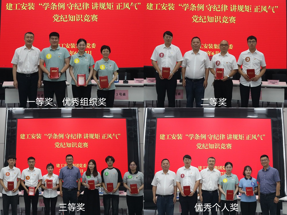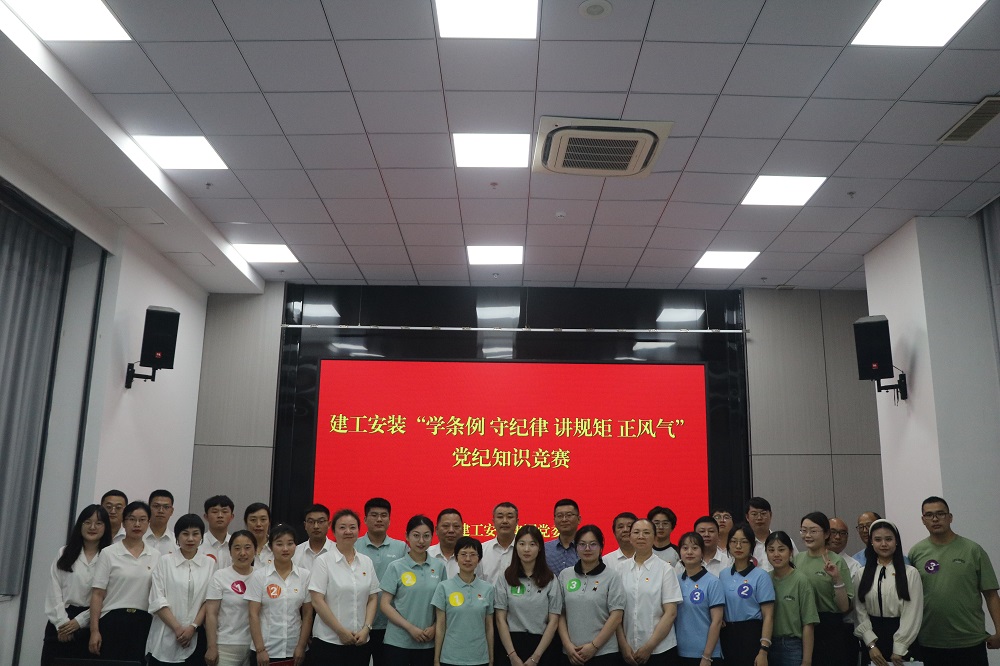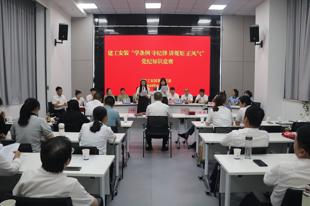 6月27日下午,建工安裝集團(tuán)舉辦“學(xué)條例 守紀(jì)律 講規(guī)矩 正風(fēng)氣”黨紀(jì)知識(shí)競(jìng)賽。公司黨委委員、紀(jì)委書記李楊,黨委委員、副總經(jīng)理董雙武,黨委委員、副總經(jīng)理樊剛出席活動(dòng),各黨支部書記、機(jī)關(guān)部門負(fù)責(zé)人以及參賽選手等40余人參加活動(dòng)。