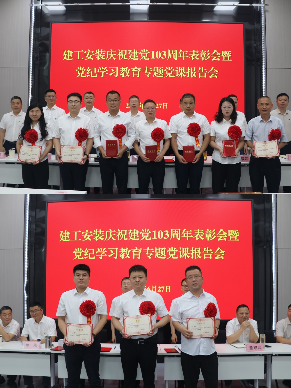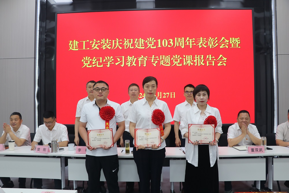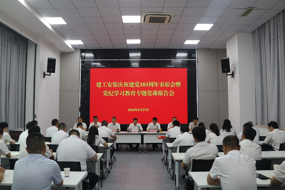 為慶祝中國(guó)共產(chǎn)黨成立103周年,扎實(shí)推進(jìn)黨紀(jì)學(xué)習(xí)教育走深走實(shí)。6月27日上午,建工安裝黨委召開慶祝建黨103周年表彰會(huì)暨黨紀(jì)學(xué)習(xí)教育專題黨課報(bào)告會(huì)。公司領(lǐng)導(dǎo)班子成員出席會(huì)議,會(huì)議由公司黨委副書記、副總經(jīng)理周正平主持。