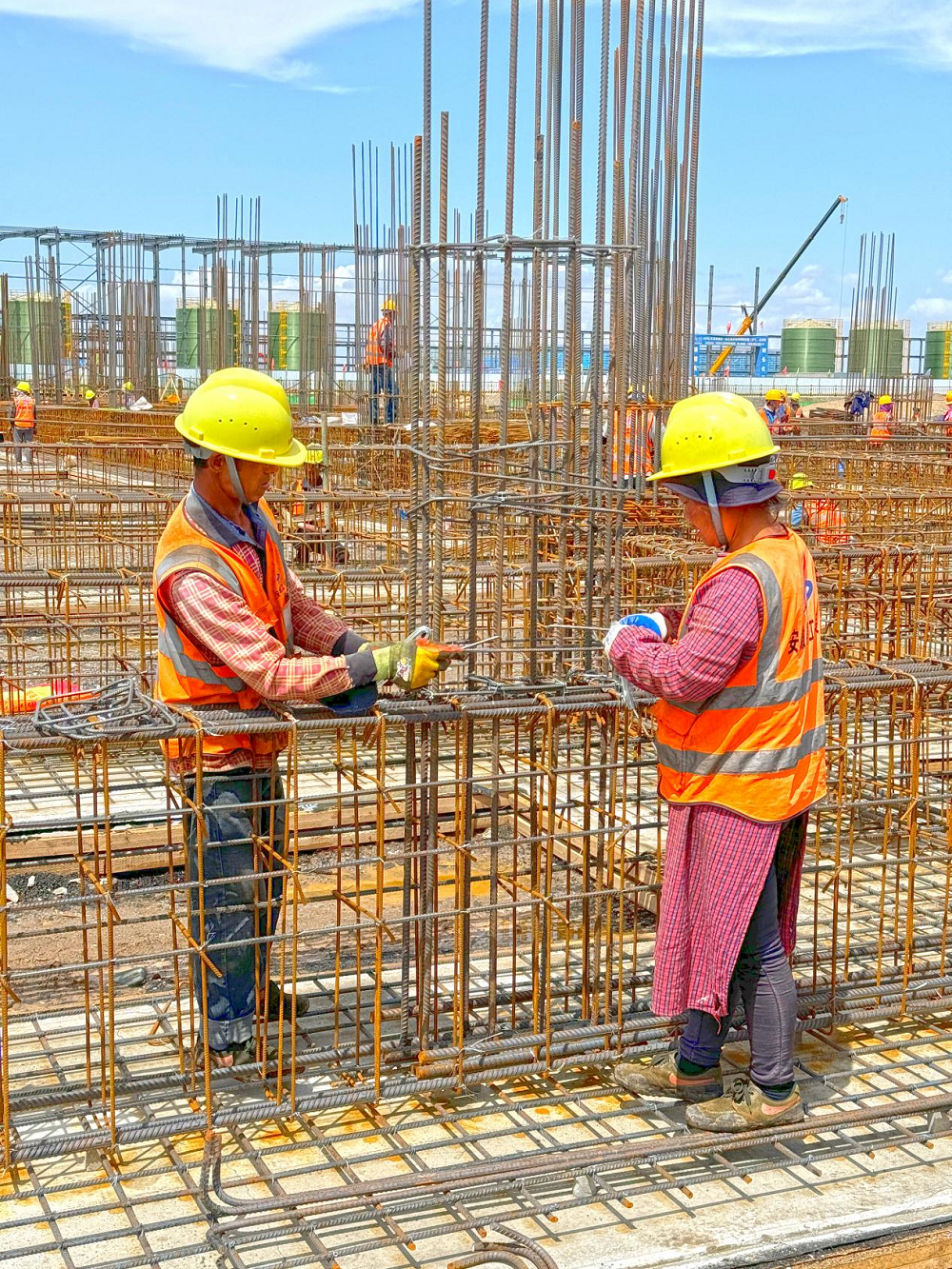 該項(xiàng)目施工現(xiàn)場人頭攢動,機(jī)械轟鳴,駐場技術(shù)人員頭頂烈日、靠前指揮,施工工人往來穿梭,或支設(shè)模板,或綁扎鋼筋,與夏競速,“激戰(zhàn)”正酣。項(xiàng)目工期緊任務(wù)重,為搶進(jìn)度、嚴(yán)安全、保工期、抓質(zhì)量,項(xiàng)目部嚴(yán)格制定施工進(jìn)度計(jì)劃,統(tǒng)籌安排施工人、材、機(jī),合理高效進(jìn)場施工作業(yè),目前項(xiàng)目正在進(jìn)行變電所及廠房的基礎(chǔ)工程。