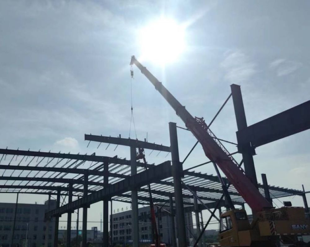 目前1-18軸鋼柱已全部安裝完成,1-6軸柱撐、鋼梁、屋面檁條已安裝結(jié)束。同時(shí)應(yīng)對持續(xù)高溫天氣,項(xiàng)目部合理安排作業(yè)時(shí)間,施工人員分工協(xié)作,錨定節(jié)點(diǎn)目標(biāo),全力以赴趕工期、搶進(jìn)度。預(yù)計(jì)9月底完成建工鋼構(gòu)智能制造基地4#廠房項(xiàng)目全部工程量。