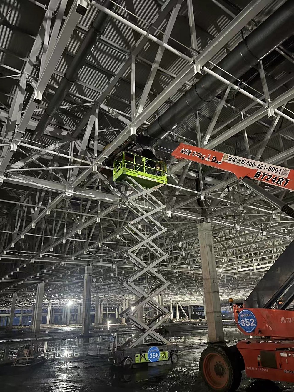 目前正在進行車間一1-6區(qū)通風(fēng)管、照明管、橋架、虹吸雨水管、衛(wèi)生間排水管、防雷接地、消防管等安裝作業(yè),材料加工區(qū)預(yù)制各類管道支架也在同步推進?,F(xiàn)已完成車間一風(fēng)管安裝約3000平方米,風(fēng)管預(yù)制約8000平方米,虹吸雨水管道安裝約120米,照明配管安裝約2000米,消防管道安裝約320米,防雷接地網(wǎng)安裝約10000米,橋架安裝約400米。
