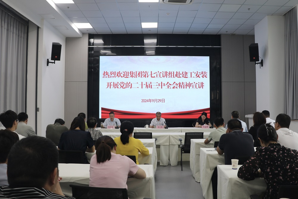 9月29日上午,股份公司黨委副書記、監(jiān)事會(huì)主席徐文聯(lián)率集團(tuán)第七宣講組赴建工安裝開展黨的二十屆三中全會(huì)精神宣講,集團(tuán)機(jī)關(guān)黨委書記朱金蓉參加宣講,建工安裝黨委書記、董事長(zhǎng)朱珍宏主持宣講會(huì)。