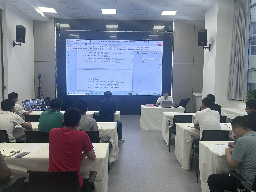 會上,集團法律事務(wù)部韓偉律師以《項目合同管理及法律風(fēng)險防范》為題,分別從項目合同簽署前注意事項、簽署時需注意的有關(guān)條款、項目管理過程中常見法律風(fēng)險防控等方面進行細致講解。通過對集團系統(tǒng)內(nèi)典型案例分析,著重闡述如何防控合同及工程項目管理過程中發(fā)生的高頻次法律風(fēng)險。此次培訓(xùn)內(nèi)容與實際工作結(jié)合緊密,為全面推動公司合規(guī)管理、依法經(jīng)營,有效防范各項風(fēng)險,實現(xiàn)公司高質(zhì)量發(fā)展打下堅實基礎(chǔ)。