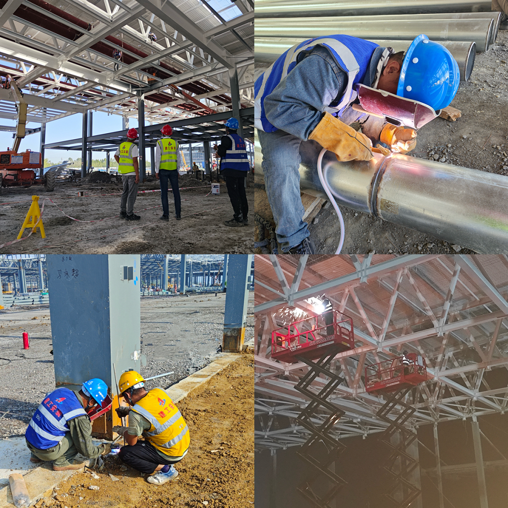 一位正在安裝管道的工人師傅說:“我們也想回家和家人團聚,但是為了工程能夠早日完工,我們愿意堅守崗位??吹阶约簠⑴c建設的項目一天天成型,心里也很有成就感。”