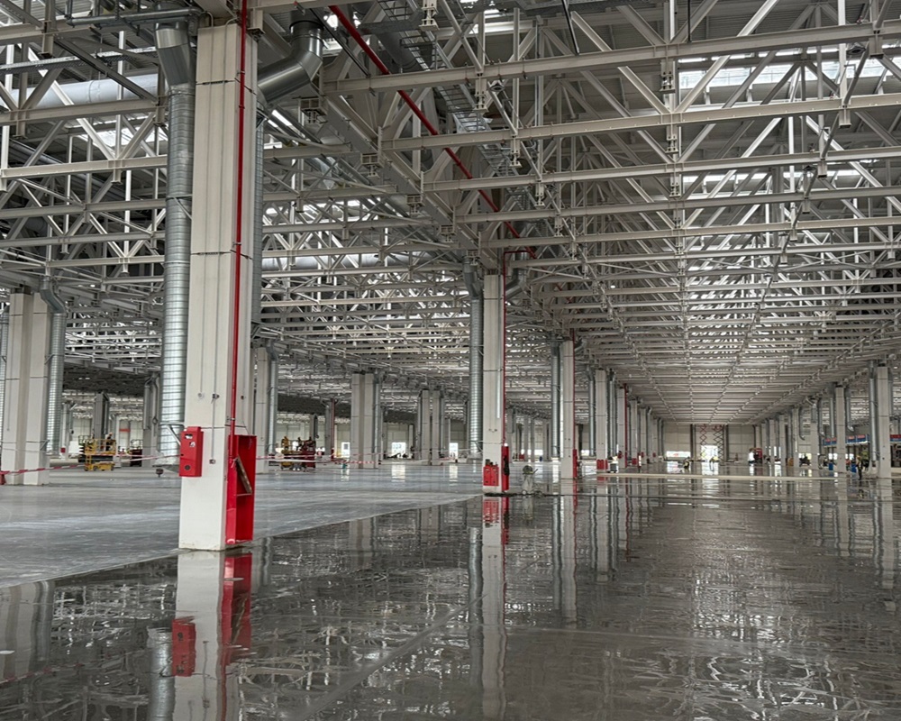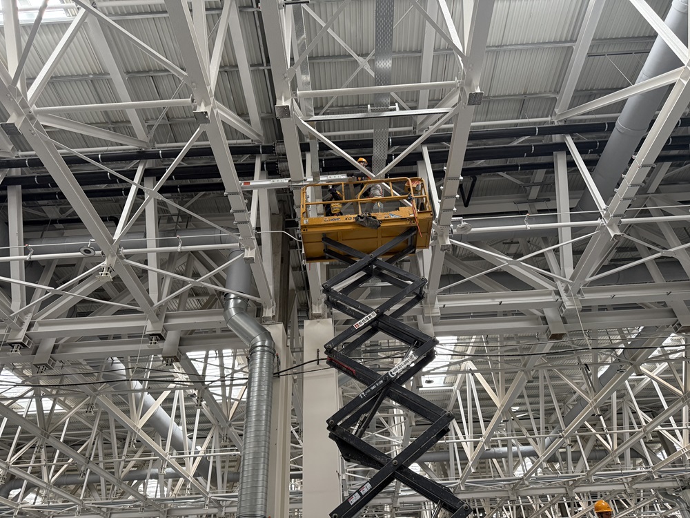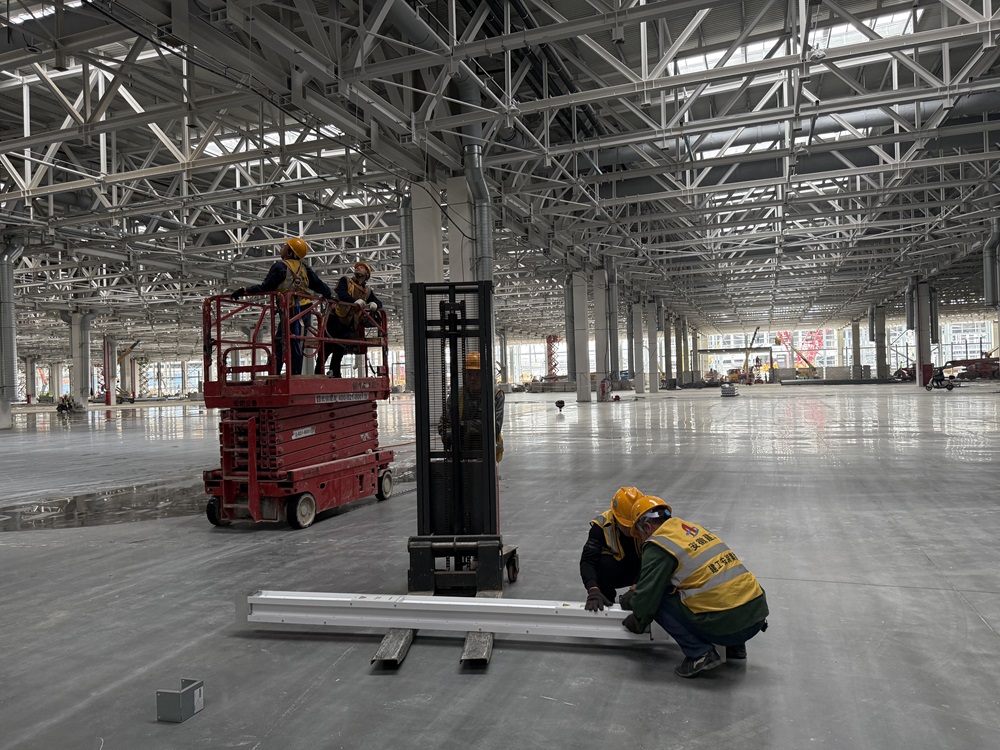 截至目前,焊裝車間燈具、車間一東側(cè)630毫米循環(huán)水不銹鋼管已全部安裝完成。本周完成消防箱安裝150套,母線安裝700米,屋頂風(fēng)機設(shè)備吊裝到位,如期完成節(jié)點目標(biāo)。與此同時,工藝廠家已進(jìn)場同步施工。