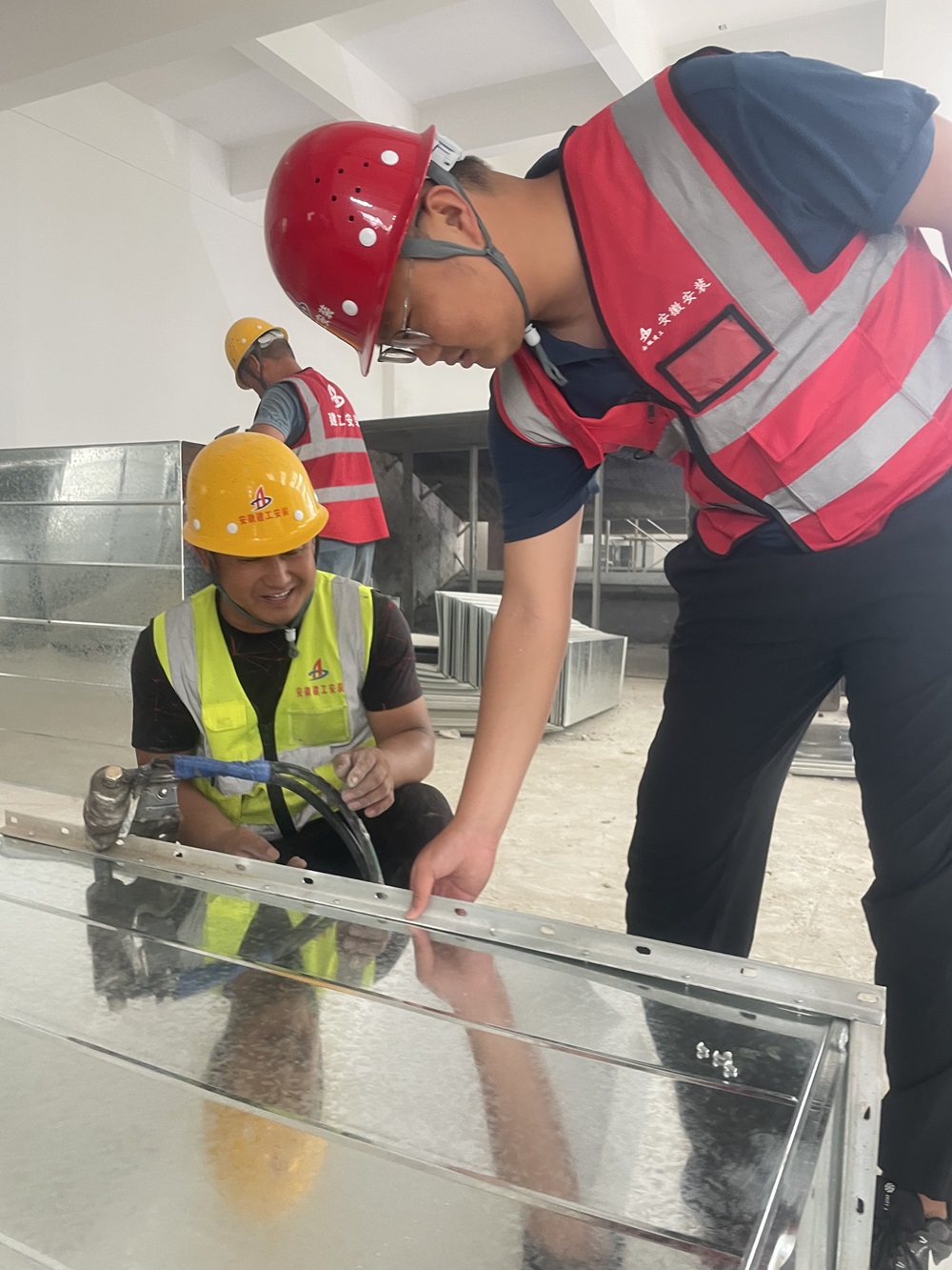 施工初期,編制責(zé)任成本階段,他組織專人專班研究擬定實(shí)施性施工組織設(shè)計(jì)。三個(gè)基地項(xiàng)目的防排煙風(fēng)管施工面臨著工藝復(fù)雜,施工成本較高,且成型觀感較差的問(wèn)題。他通過(guò)現(xiàn)場(chǎng)與監(jiān)理、業(yè)主的溝通把防排煙風(fēng)管改成鋼面鎂質(zhì)復(fù)合風(fēng)管。此種風(fēng)管不僅符合新規(guī)中對(duì)于風(fēng)管耐火性、隔熱性及完整性的要求而且兼具了美觀、輕體及安裝便捷等優(yōu)勢(shì)。此變更預(yù)計(jì)可為項(xiàng)目節(jié)省30萬(wàn)元。
