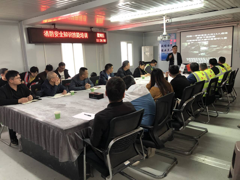 為進一步提高全員消防意識,增強員工面對突發(fā)事件自防自救的能力,11月15日滁州分公司以“消防安全宣傳月”為契機,在新橋智能制造產(chǎn)業(yè)園項目舉辦了一場消防安全知識技能培訓。分公司領導班子、機關各部門負責人、項目經(jīng)理、項目部全體管理人員和部分勞務班組長等參加了培訓活動。