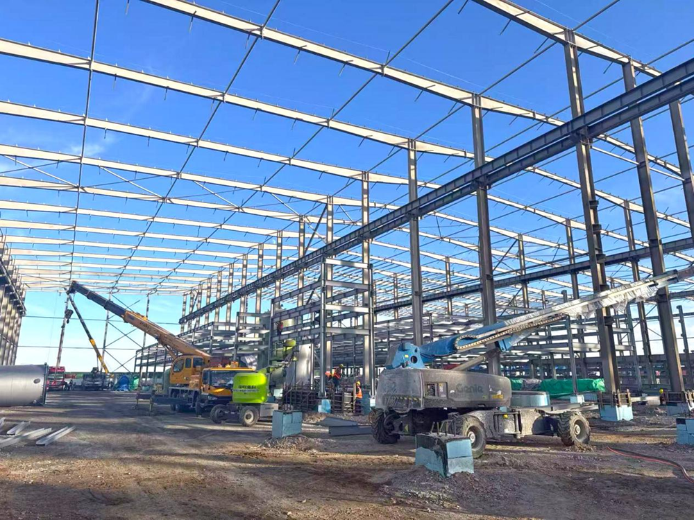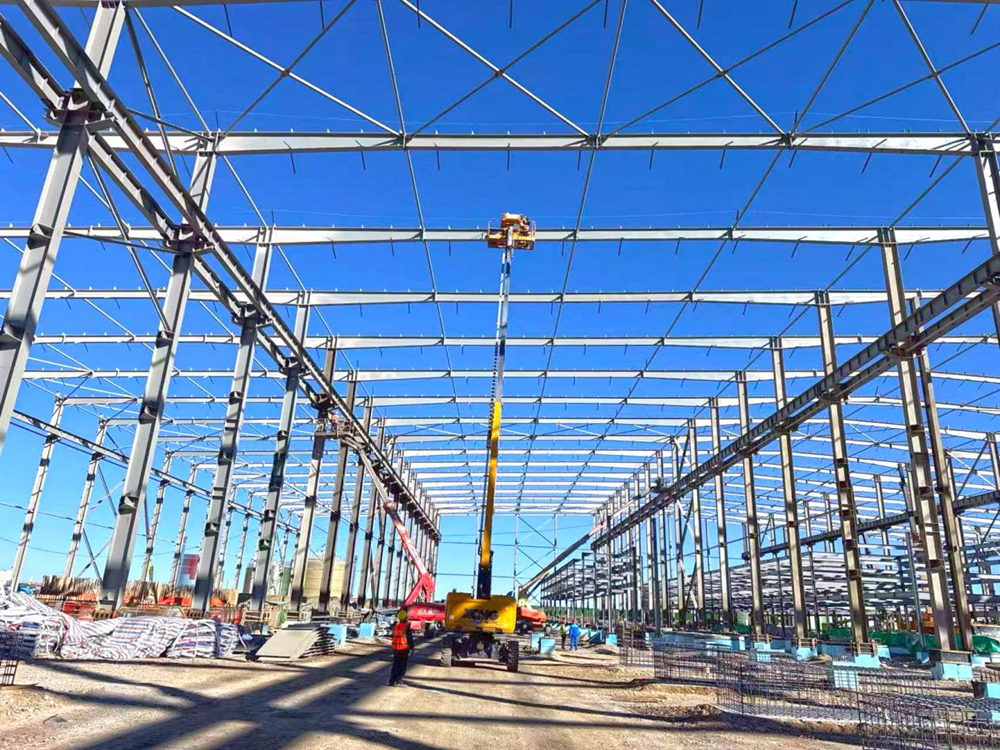 吊車的“長臂”在空中伸展、曲臂車在鋼架間頻繁升降、工程車在場地上來回穿梭、工人們忙碌的身影隨處可見,敲擊聲此起彼伏……針對當(dāng)前重點建設(shè)任務(wù),項目部精細(xì)部署,組織施工力量、細(xì)化節(jié)點安排、調(diào)配人機(jī)資源,鼓足干勁、狠抓安全、緊扣進(jìn)度、全員發(fā)力,克服高海拔的特殊施工環(huán)境和偏遠(yuǎn)地區(qū)的資源保障困難,項目部提出了“奮戰(zhàn)兩月 決勝年末”的戰(zhàn)斗口號,以“拼”的姿態(tài),“搶”的速度,全力沖刺12月底確保完成廠房封閉目標(biāo)節(jié)點。