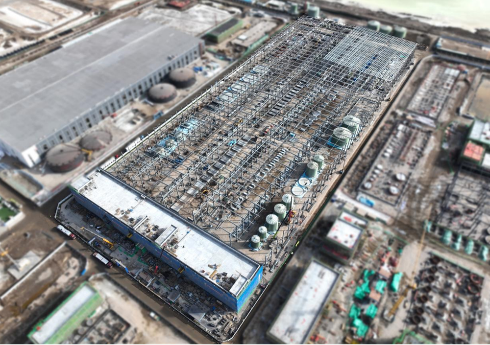 截至目前變電所主體結(jié)構(gòu)封頂,二次結(jié)構(gòu)完成一半;廠房鋼結(jié)構(gòu)主體基本完成,圍護(hù)系統(tǒng)進(jìn)場施工,設(shè)備基礎(chǔ)全部完成。