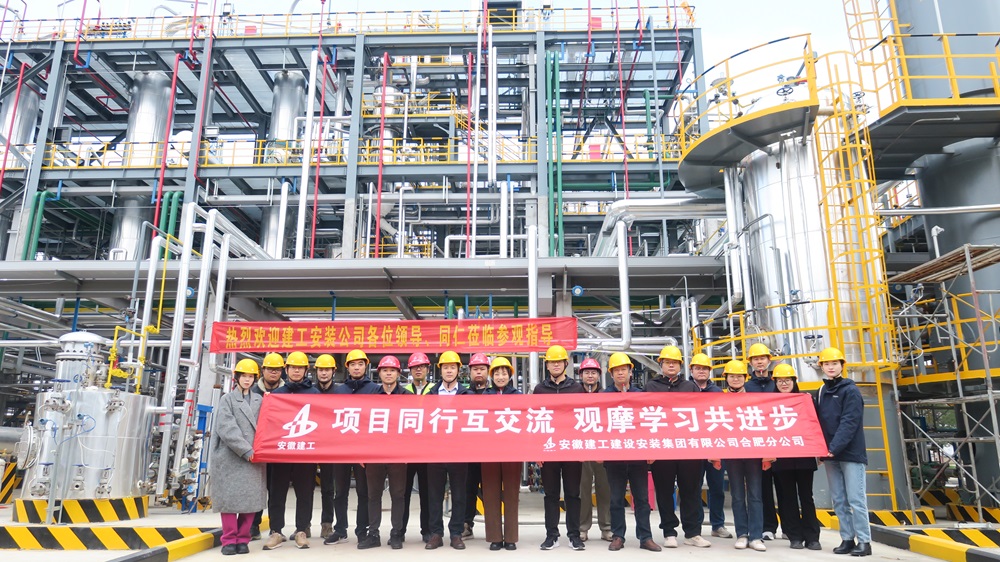 在項(xiàng)目現(xiàn)場(chǎng),項(xiàng)目負(fù)責(zé)人介紹了該化工類項(xiàng)目的基本概況和工程特點(diǎn),分析講解有關(guān)工業(yè)化項(xiàng)目的整體管理策劃、施工組織、質(zhì)量控制、安全管理、現(xiàn)場(chǎng)質(zhì)量安全標(biāo)準(zhǔn)化施工、設(shè)備安裝技術(shù)等方面的經(jīng)驗(yàn)。觀摩過(guò)程中,各項(xiàng)目管理人員分享了自身在質(zhì)量安全文明標(biāo)準(zhǔn)化施工管理、施工樣板做法和實(shí)體工藝質(zhì)量管理情況的經(jīng)驗(yàn)做法。現(xiàn)場(chǎng)一個(gè)個(gè)技術(shù)含量足、輻射帶動(dòng)強(qiáng)、綜合效益高的新技術(shù)、好想法層出不窮,學(xué)習(xí)交流氛圍熱烈濃厚。