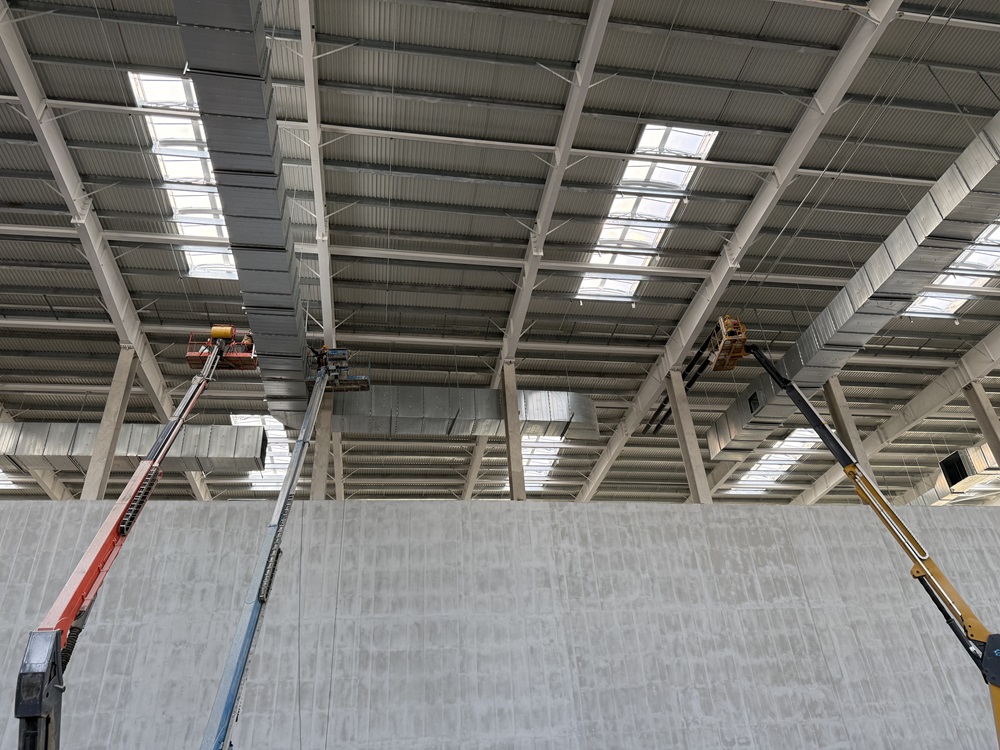 本周,焊裝車(chē)間已完成全部實(shí)物工程量,循環(huán)水、空調(diào)水、消防水、生活給水、冷凝水、虹吸雨水等全面進(jìn)入系統(tǒng)試壓階段。同步配合完成了總包單位焊接機(jī)器人進(jìn)場(chǎng)的細(xì)節(jié)工作。目前,車(chē)間一QA樓與沖壓車(chē)間正在進(jìn)行安裝工作,能源中心同步施工,冷卻塔、板式換熱器已有序進(jìn)場(chǎng)安裝。