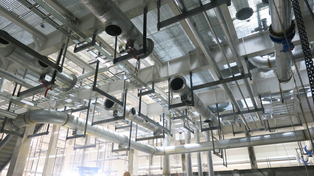 截至目前,焊裝車間空調(diào)水系統(tǒng)、給水系統(tǒng)、消防水系統(tǒng)已全部完成系統(tǒng)試壓工作。焊裝車間屋頂風(fēng)機、風(fēng)機控制電纜、動力電纜也已全部安裝完成。與此同時本項目的能源中心正在有條不紊的推進(jìn),冷水機組、冷卻塔、水泵等大型設(shè)備陸續(xù)到場。