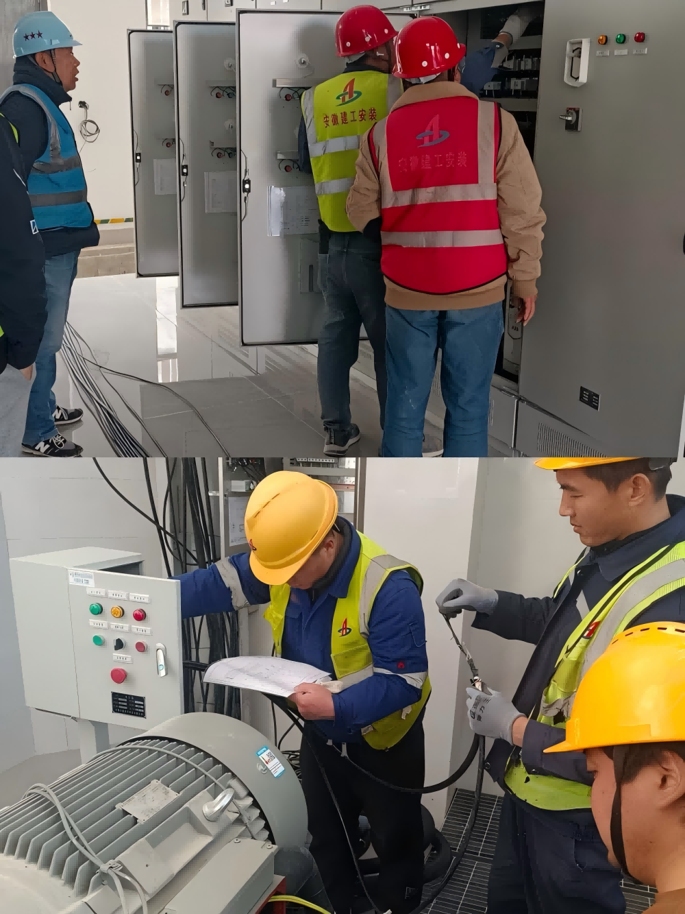 圖為合肥七水廠三期安裝工程項(xiàng)目敷設(shè)電纜、配電柜、設(shè)備接線