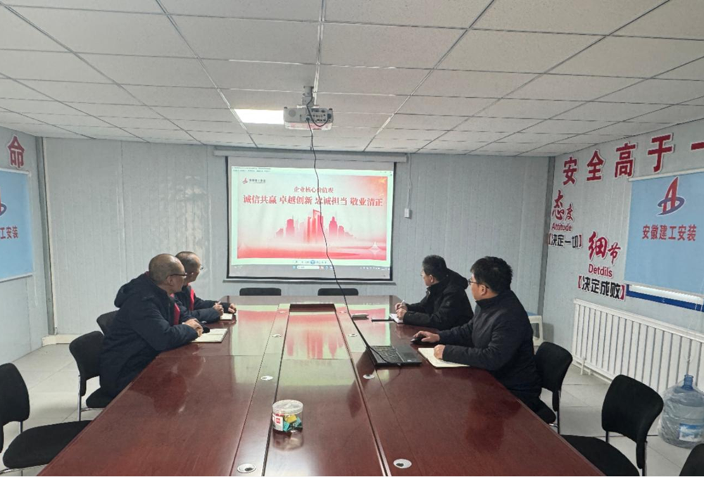 近日,建工安裝新疆烏蘇分公司召開專題學(xué)習(xí)會(huì),傳達(dá)學(xué)習(xí)宣貫集團(tuán)核心價(jià)值觀,會(huì)議以現(xiàn)場+視頻方式召開,分公司黨支部書記、經(jīng)理李磊主持會(huì)議,分公司領(lǐng)導(dǎo)班子成員、機(jī)關(guān)及項(xiàng)目人員參加。