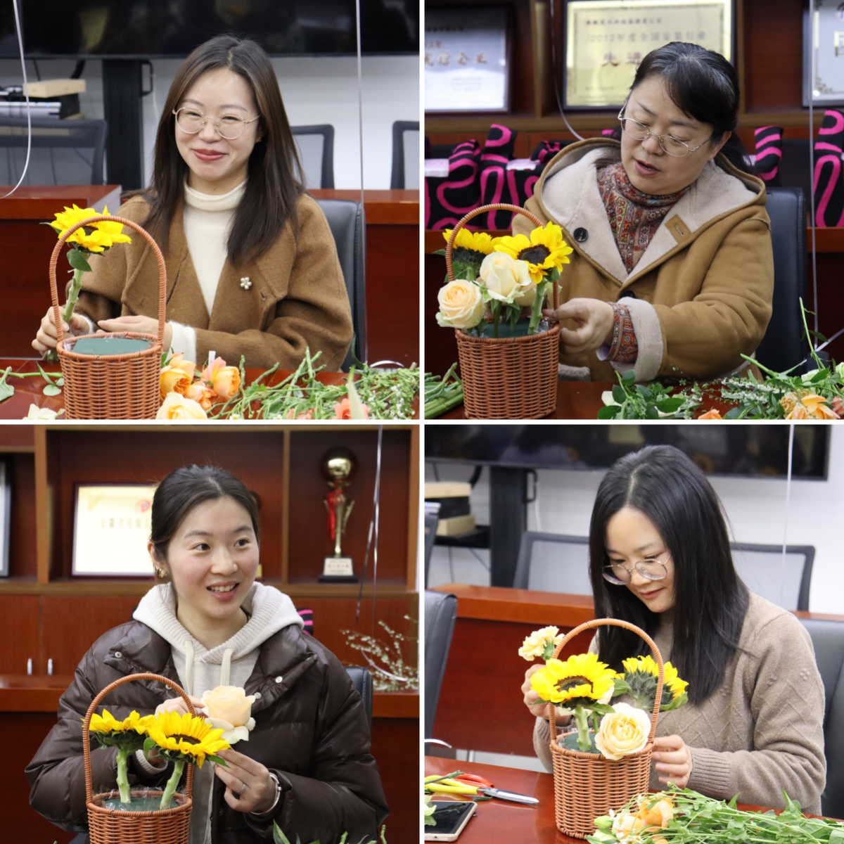 活動現(xiàn)場花香四溢,充滿著春天的氣息,專業(yè)花藝師從花材特性、色彩美學(xué)到造型構(gòu)思向大家進行了系統(tǒng)講解并進行了現(xiàn)場演示。女職工們興致盎然、躍躍欲試,充分發(fā)揮自己的想象力,以高漲的熱情投入到插花創(chuàng)作中,紛紛化身“春日設(shè)計師”,將玫瑰的熱烈、百合的芬芳、向日葵的陽光巧妙組合,在修剪與構(gòu)思中展現(xiàn)女性的細膩匠心。大家一邊插花創(chuàng)作,一邊互相交流著自己的想法和創(chuàng)意,現(xiàn)場充滿了歡聲笑語、其樂融融。