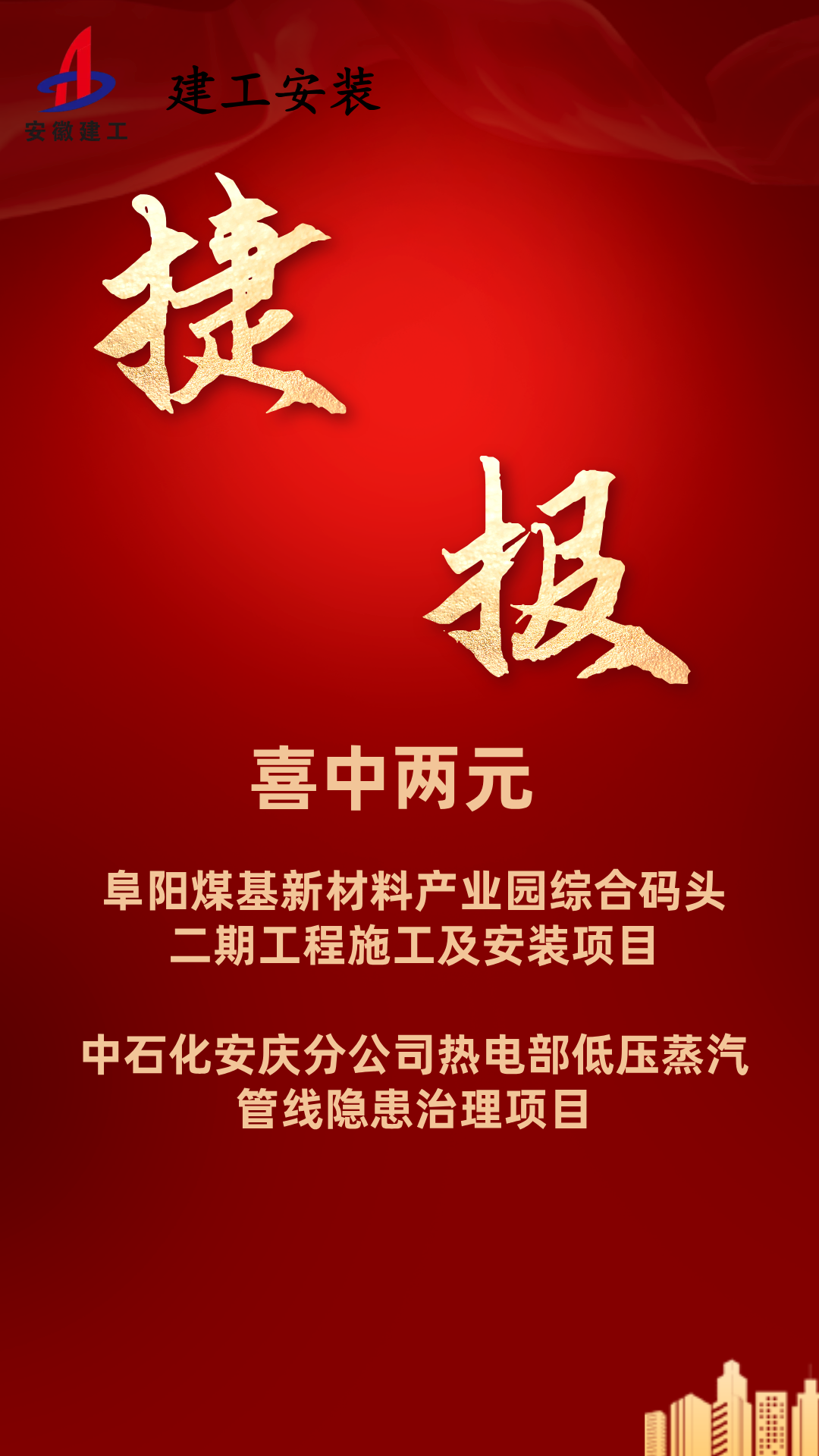 近期,建工安裝喜中兩元,成功中標(biāo)阜陽煤基新材料產(chǎn)業(yè)園綜合碼頭二期工程施工及安裝項(xiàng)目以及中石化安慶分公司熱電部低壓蒸汽管線隱患治理項(xiàng)目,中標(biāo)總金額5400萬元。