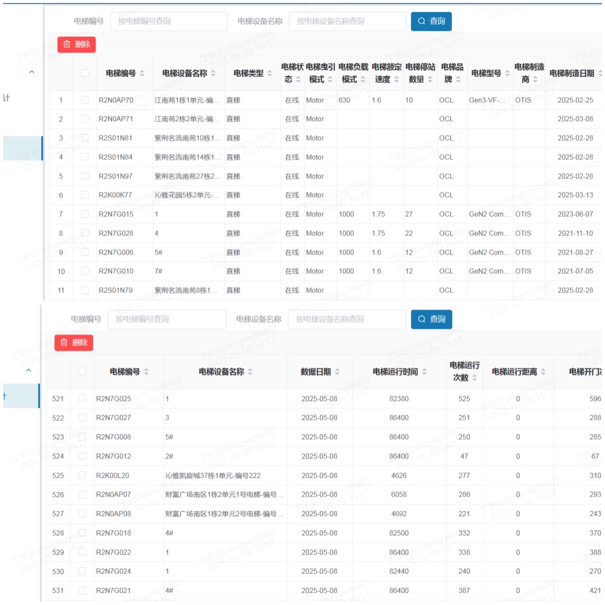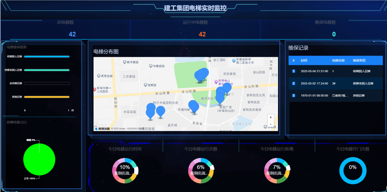新搭建的電梯管理模塊構(gòu)建起高效的數(shù)據(jù)互通橋梁,不僅能夠?qū)崟r獲取已上線電梯編號、電梯設(shè)備名稱等各項基礎(chǔ)數(shù)據(jù),還能精準監(jiān)測電梯運行時間、運行距離、運行次數(shù)、開門次數(shù)等動態(tài)數(shù)據(jù)信息。該系統(tǒng)可全程追蹤電梯召修記錄,詳細記錄召修維保上報時間、電梯維保人員到場時間,以及電梯故障處理過程、因故障困人后的解救時間等信息。這些數(shù)據(jù)的全面整合與實時呈現(xiàn),能夠全方位、立體化掌握每臺電梯的運行狀態(tài)及故障率,增強了電梯運行的安全性和可靠性,有效提升電梯維保效率。